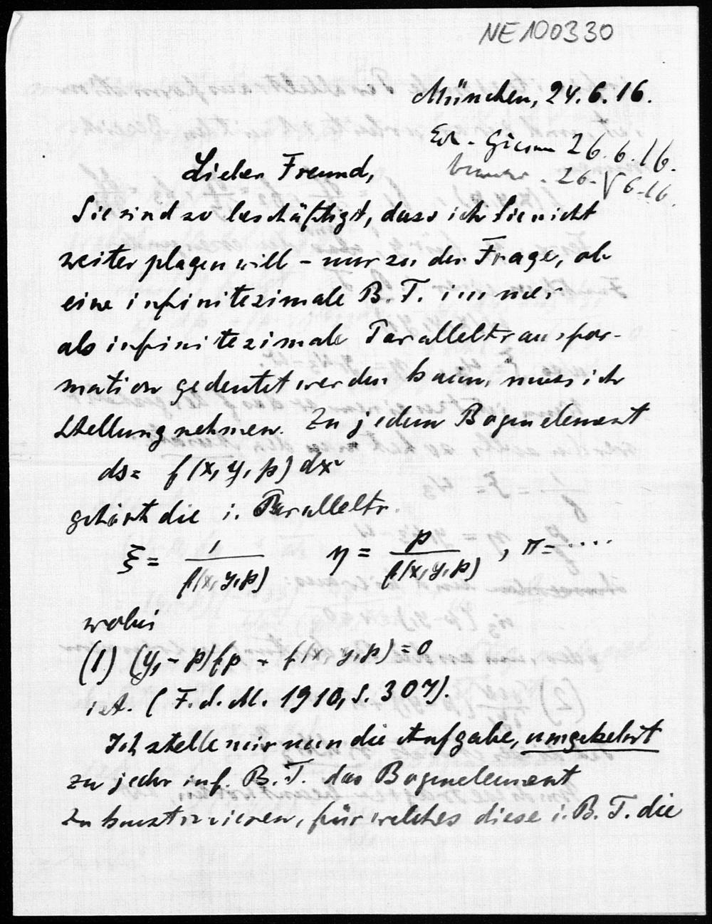 Brief von Heinrich Liebmann an Friedrich Engel vom 24.6.1916