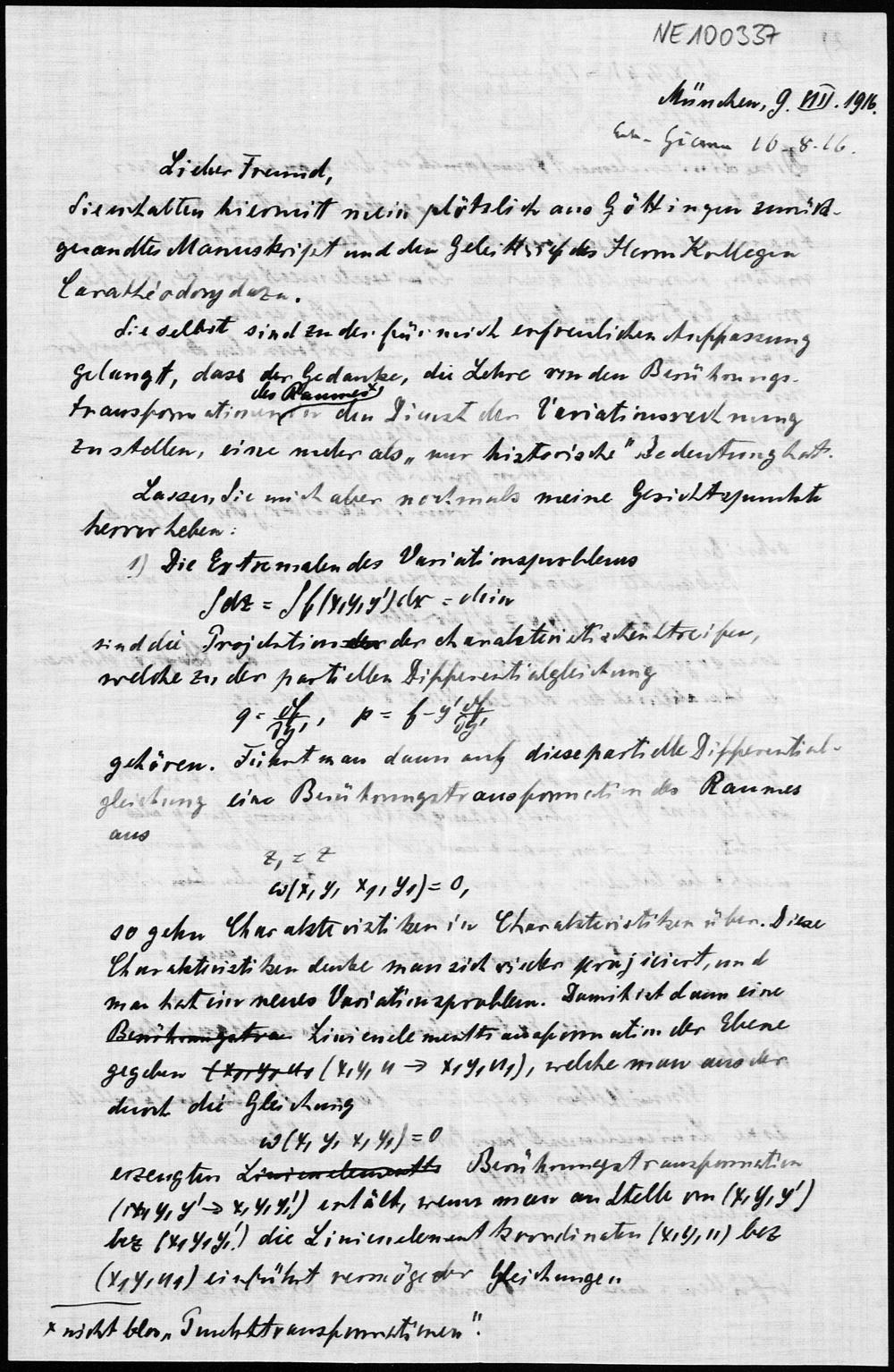 Brief von Heinrich Liebmann an Friedrich Engel vom 9.8.1916
