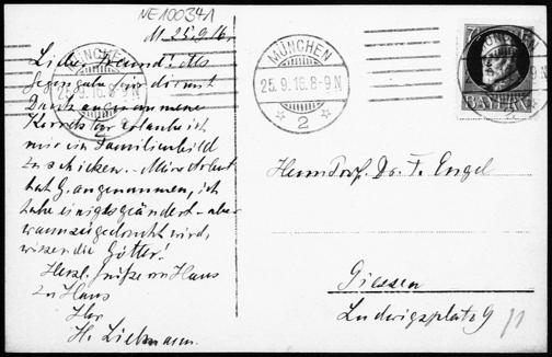 Postkarte (Foto) von Heinrich Liebmann an Friedrich Engel vom 25.9.1916