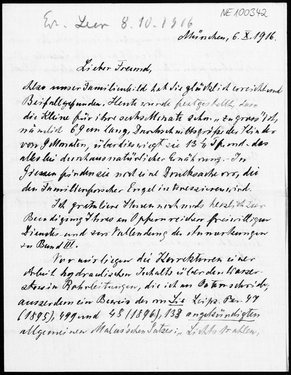 Brief von Heinrich Liebmann an Friedrich Engel vom 6.10.1916