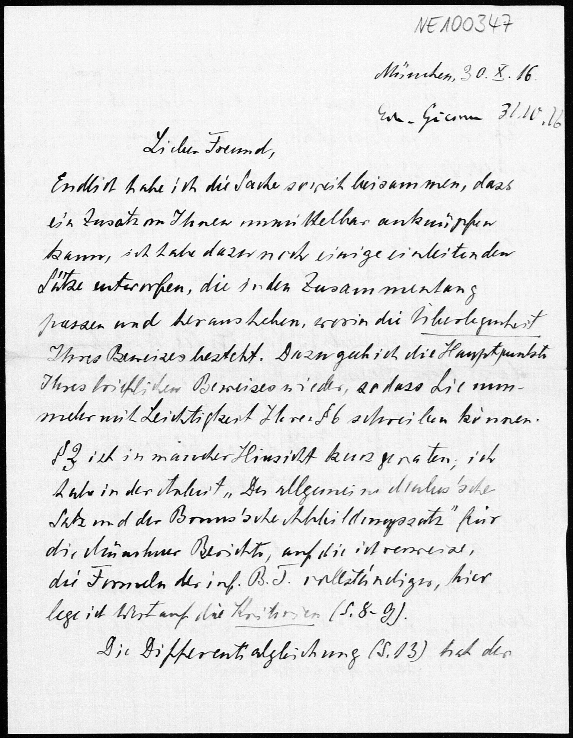 Brief von Heinrich Liebmann an Friedrich Engel vom 30.10.1916