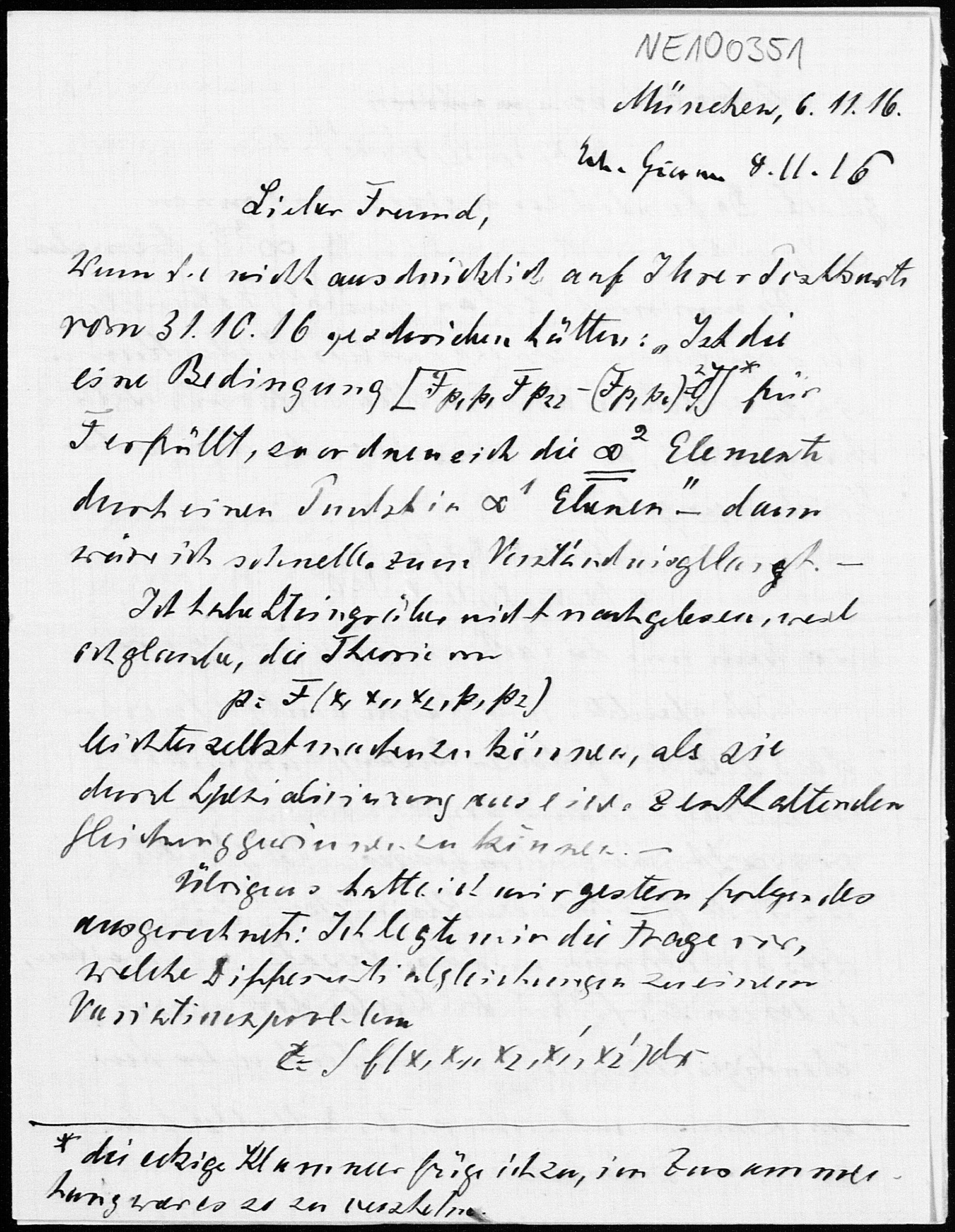 Brief von Heinrich Liebmann an Friedrich Engel vom 6.11.1916