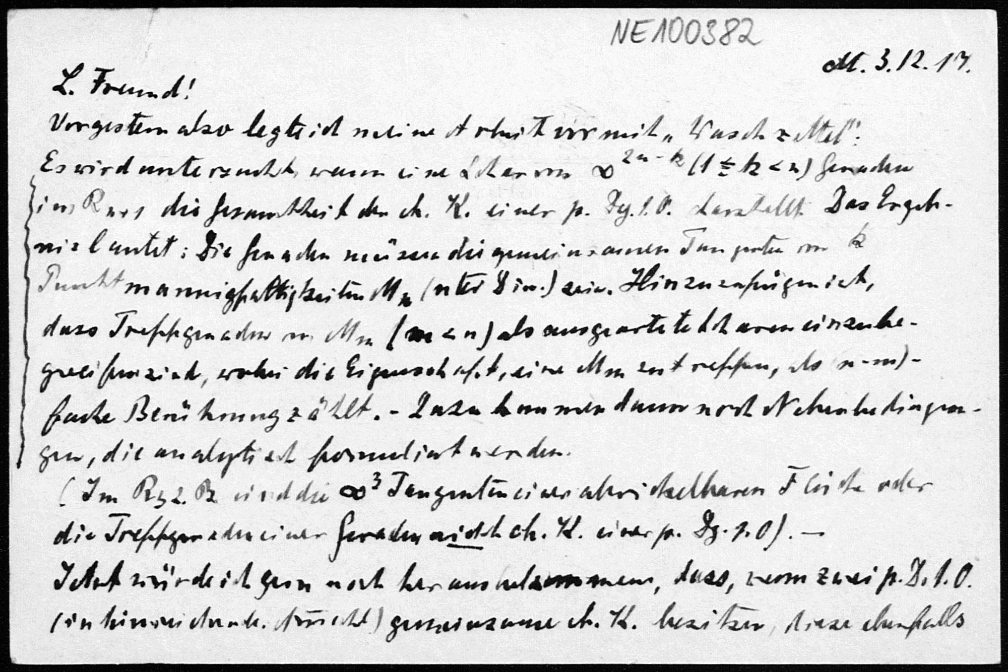 Postkarte von Heinrich Liebmann an Friedrich Engel vom 3.12.1917