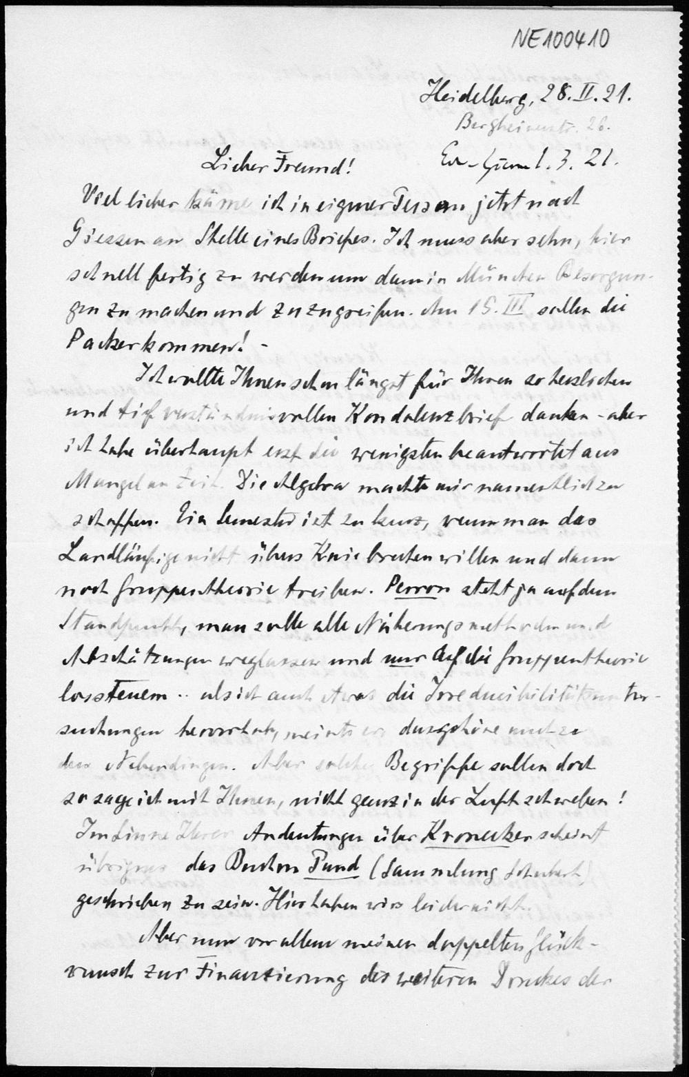 Brief von Heinrich Liebmann an Friedrich Engel vom 28.2.1921
