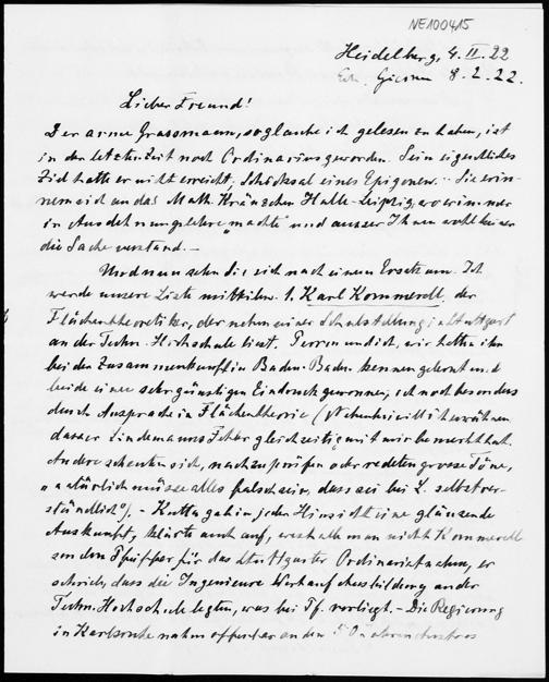 Brief von Heinrich Liebmann an Friedrich Engel vom 4.2.1922