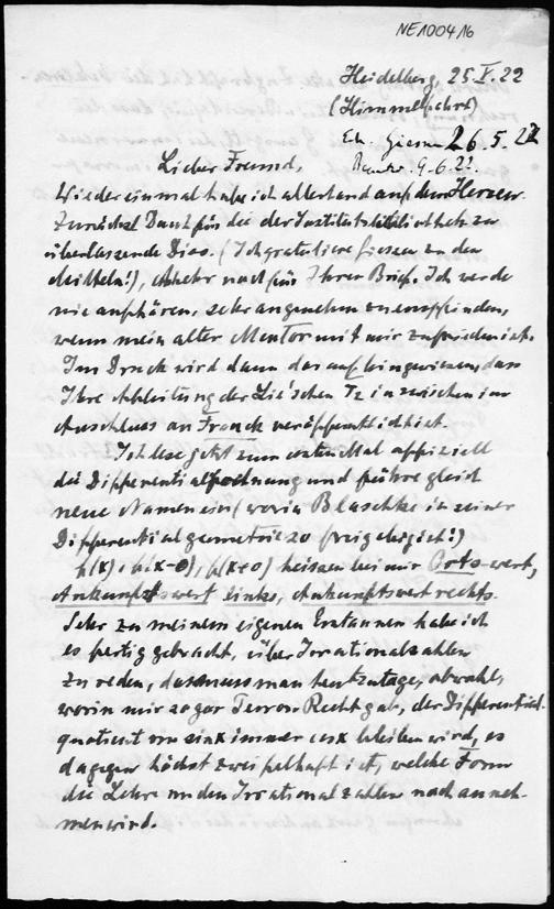 Brief von Heinrich Liebmann an Friedrich Engel vom 25.5.1922
