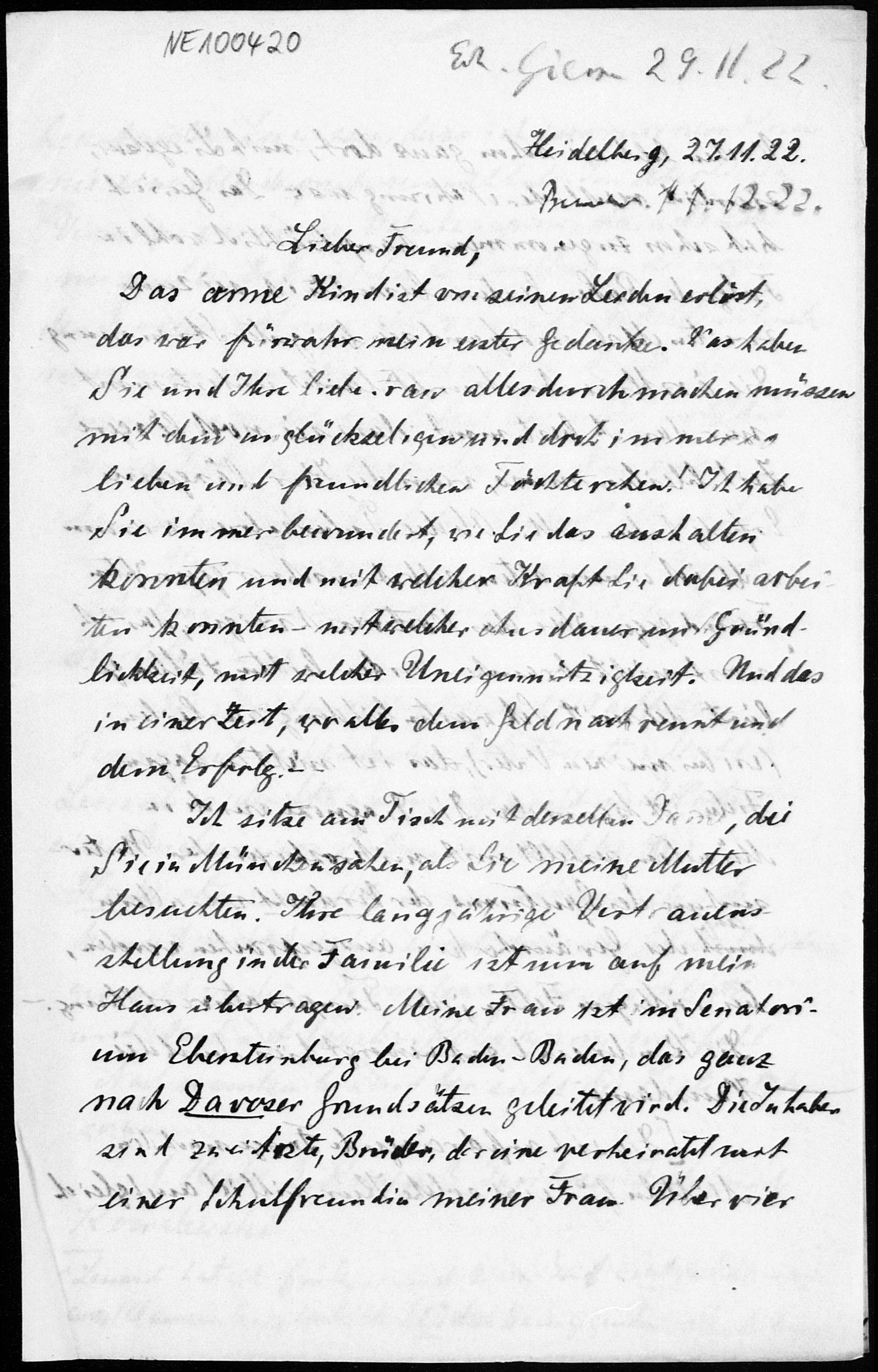Brief von Heinrich Liebmann an Friedrich Engel vom 27.11.1922