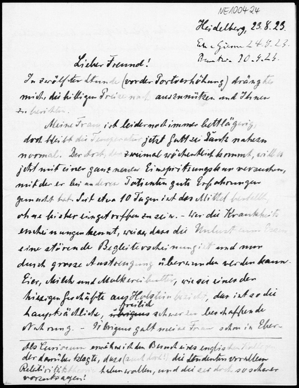 Brief von Heinrich Liebmann an Friedrich Engel vom 23.8.1923