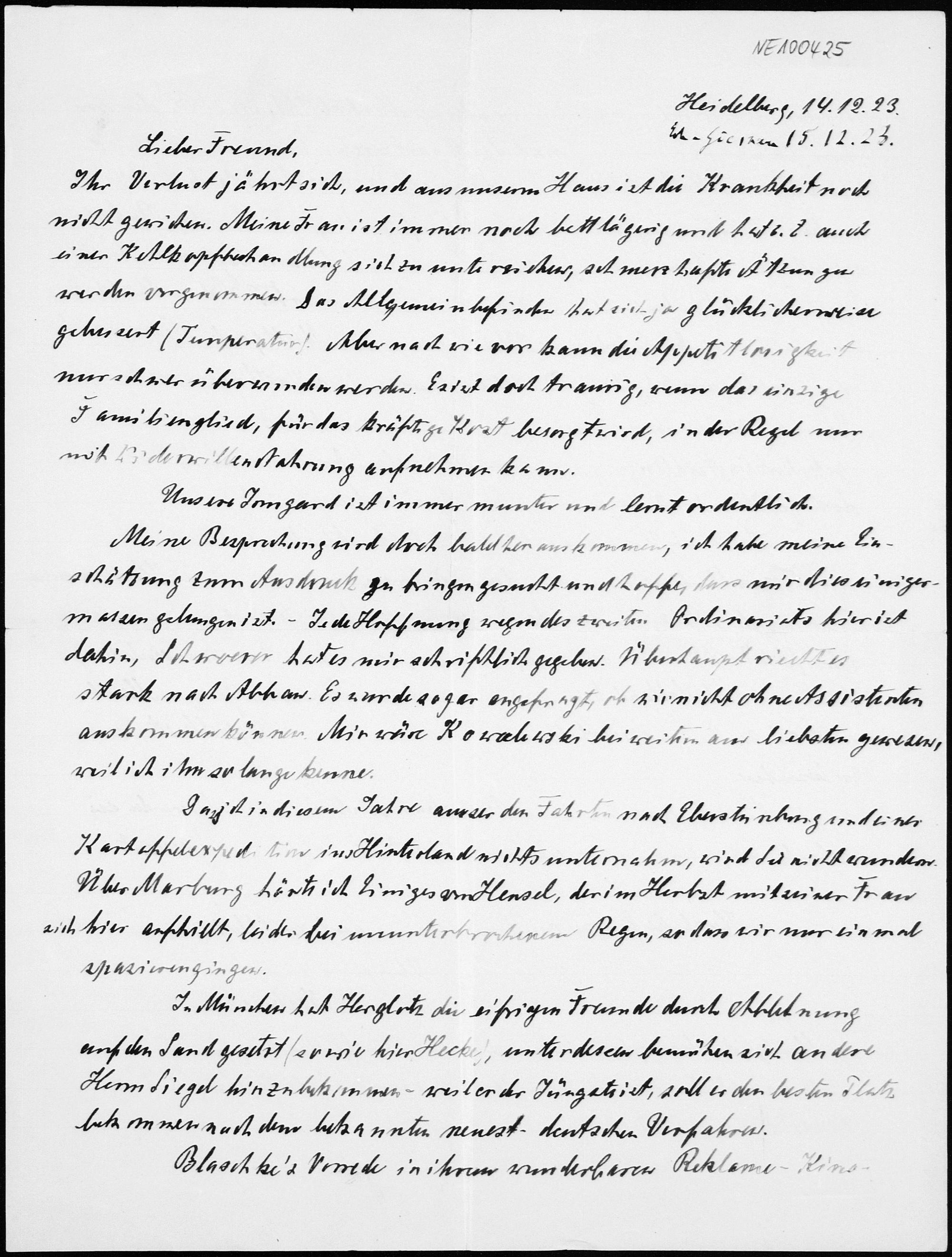 Brief von Heinrich Liebmann an Friedrich Engel vom 14.12.1923