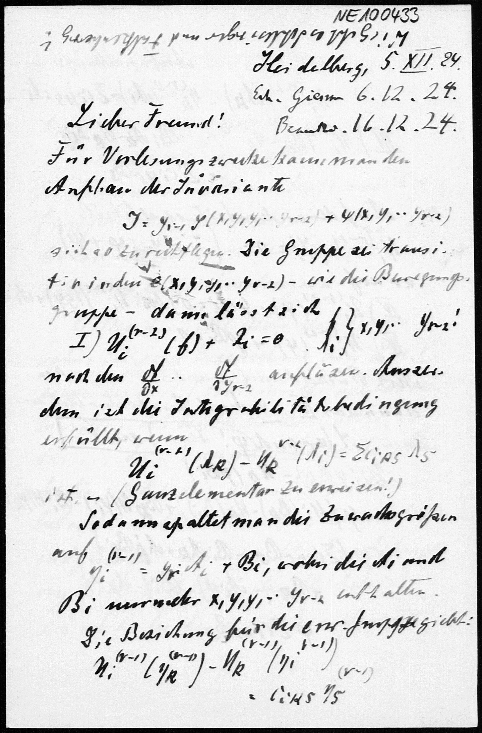 Brief von Heinrich Liebmann an Friedrich Engel vom 5.12.1924