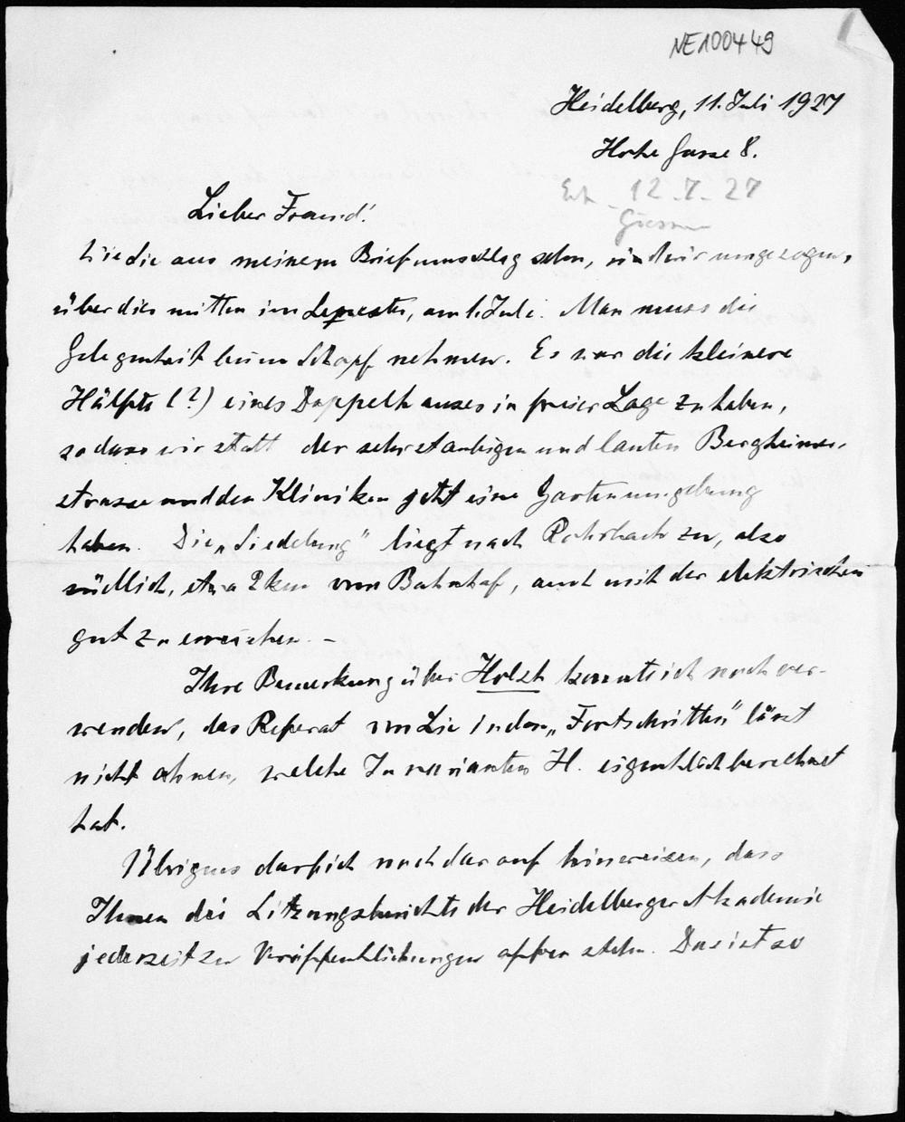 Brief von Heinrich Liebmann an Friedrich Engel vom 11.7.1927