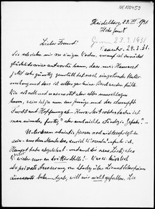 Brief von Heinrich Liebmann an Friedrich Engel vom 22.3.1931