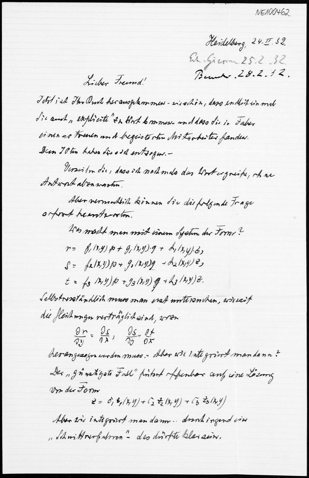 Brief von Heinrich Liebmann an Friedrich Engel vom 24.2.1932