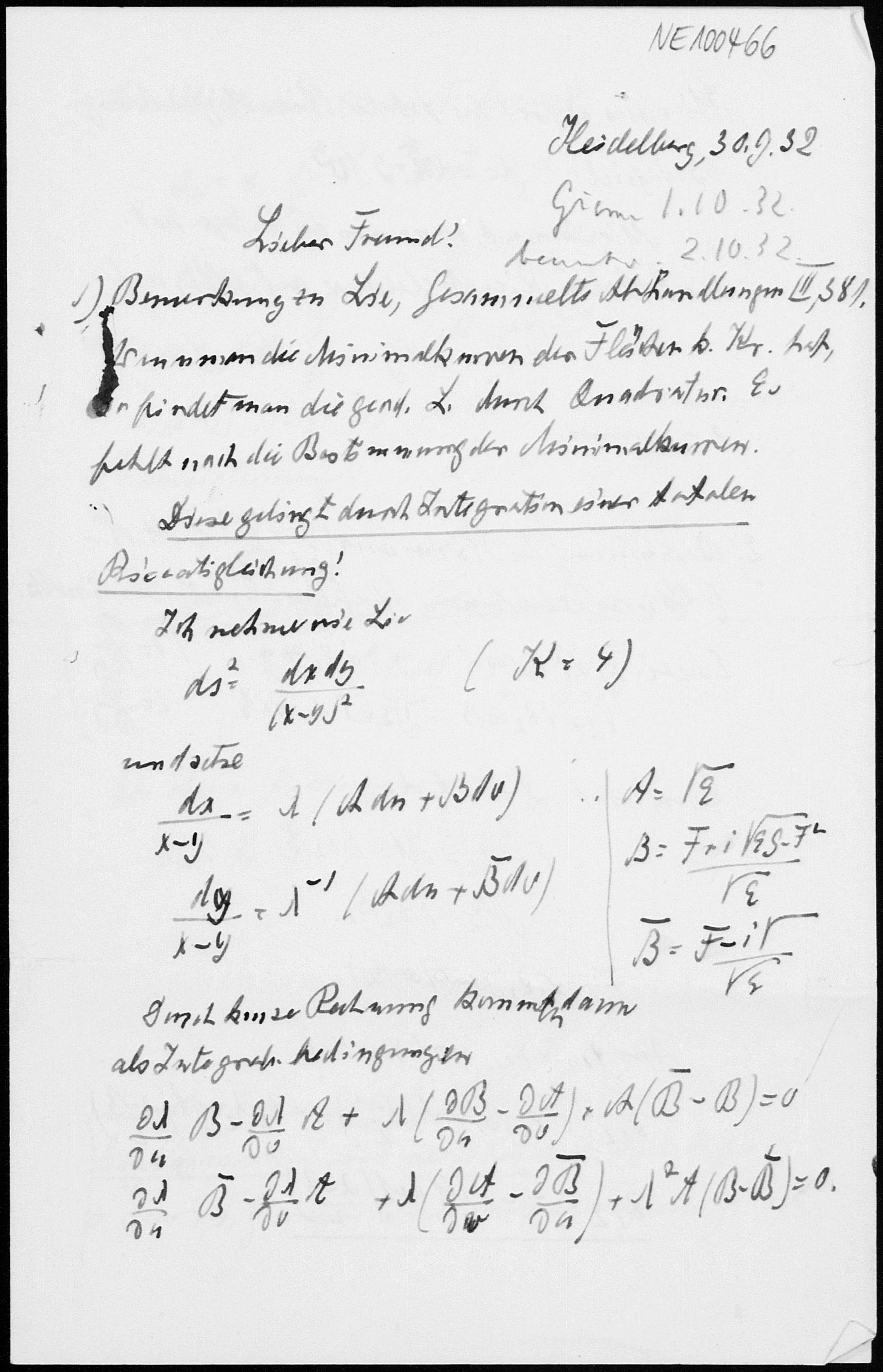 Brief von Heinrich Liebmann an Friedrich Engel vom 30.9.1932