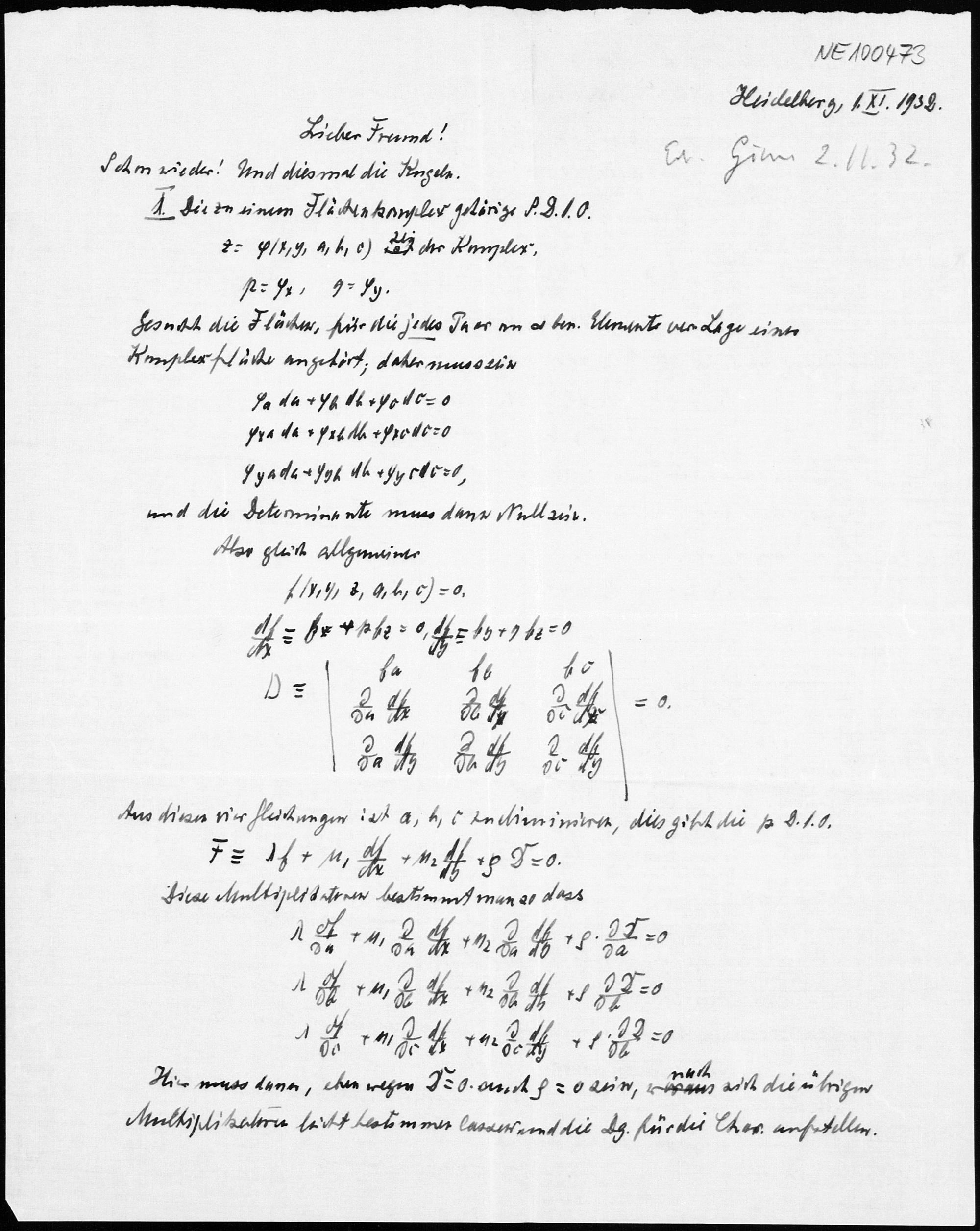 Brief von Heinrich Liebmann an Friedrich Engel vom 1.11.1932