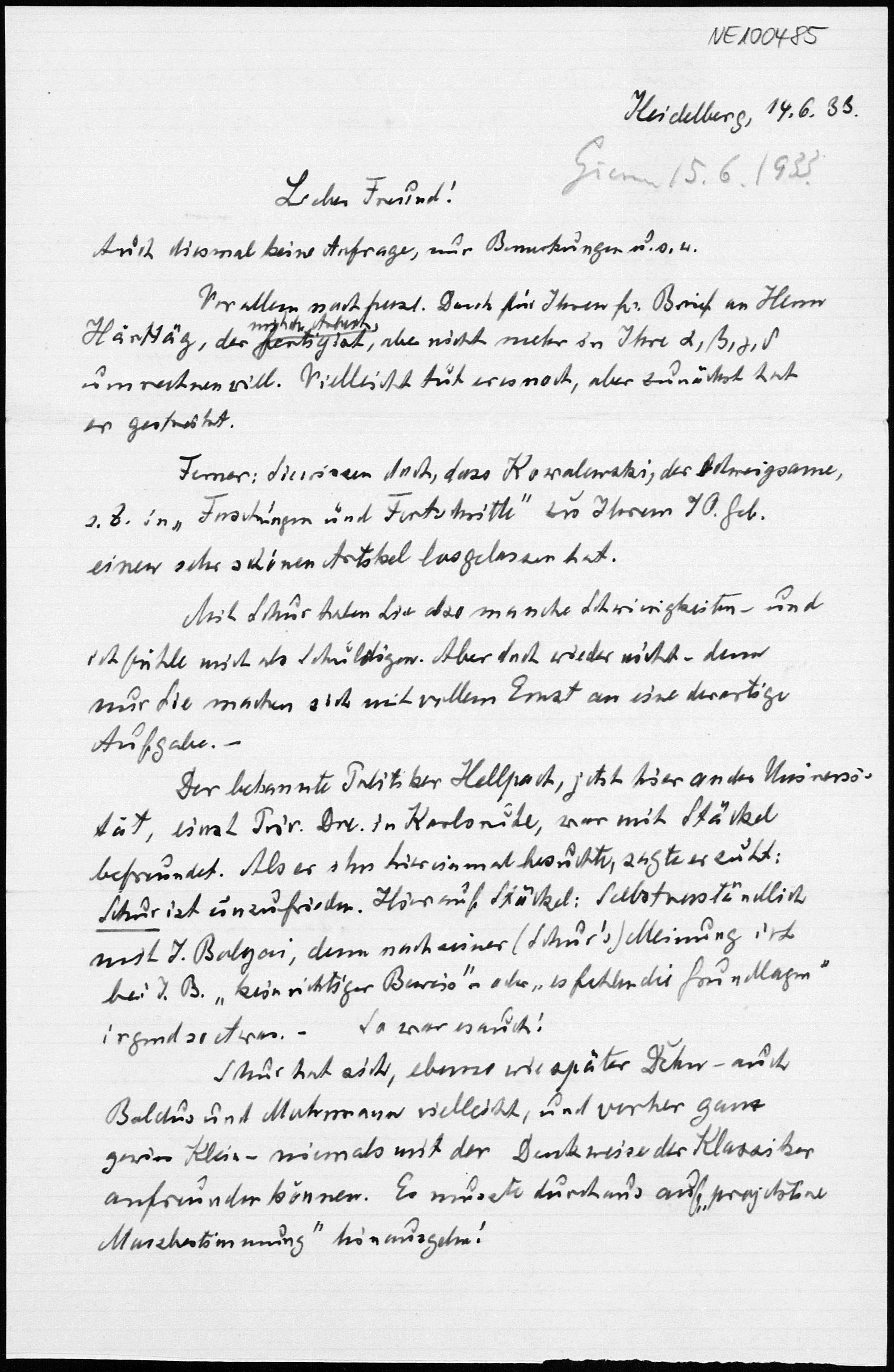 Brief von Heinrich Liebmann an Friedrich Engel vom 14.6.1933