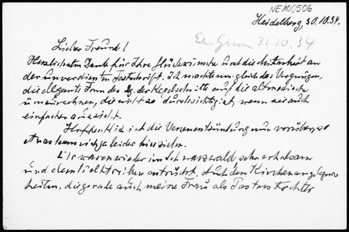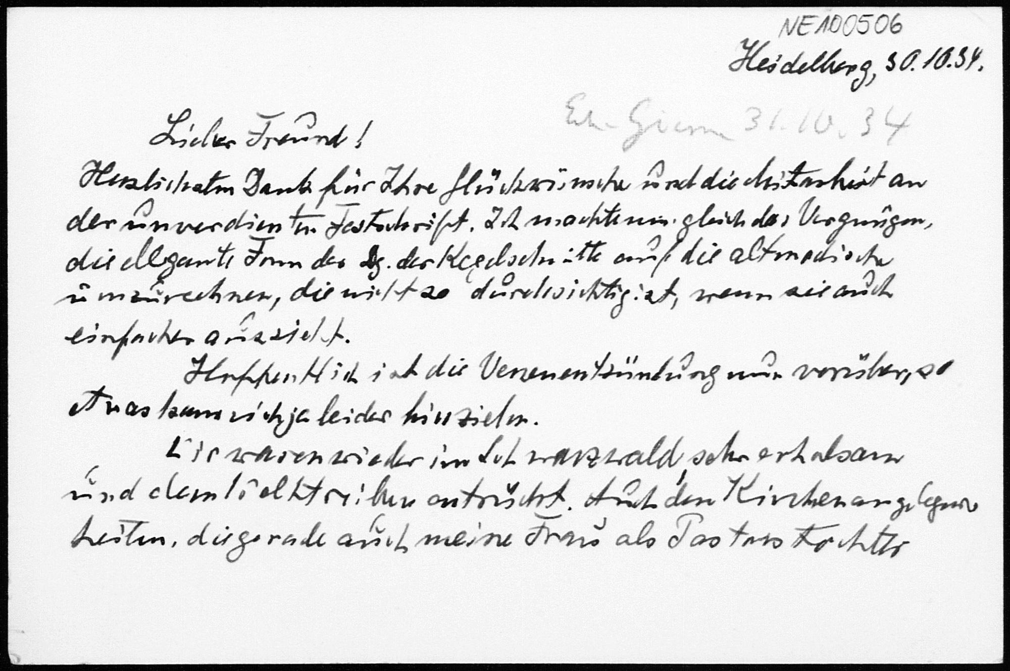 Briefkarte von Heinrich Liebmann an Friedrich Engel vom 30.10.1934
