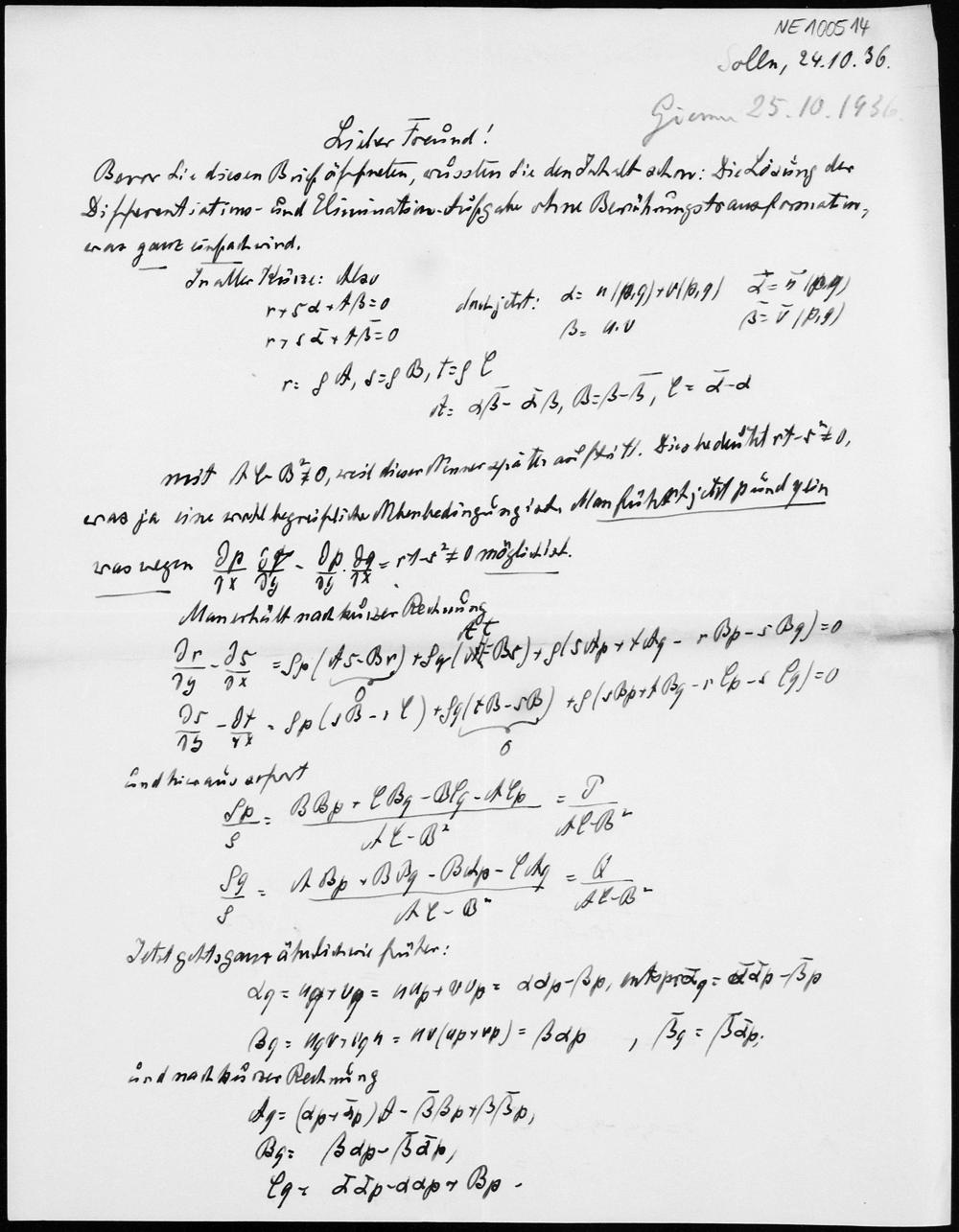 Brief von Heinrich Liebmann an Friedrich Engel vom 24.10.1936
