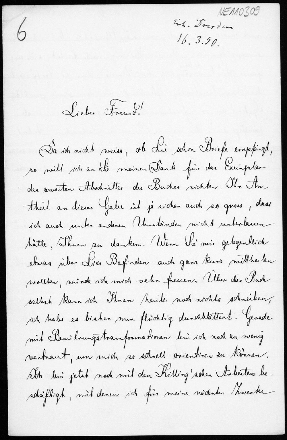 Brief von Friedrich Schur an Friedrich Engel vom 10.3.1890