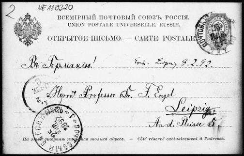Postkarte von Friedrich Schur an Friedrich Engel vom 5.2.1892