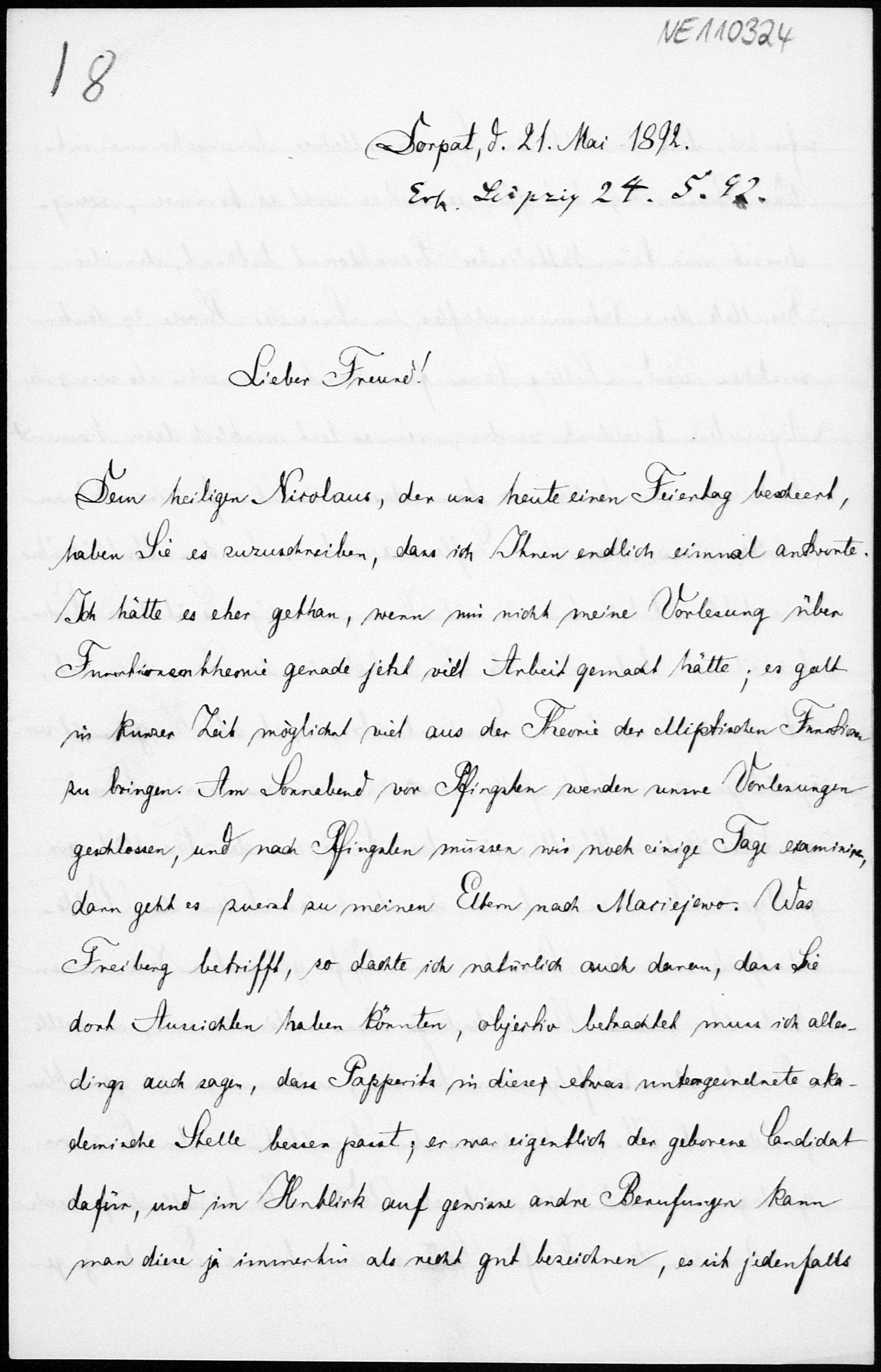 Brief von Friedrich Schur an Friedrich Engel vom 21.5.1892
