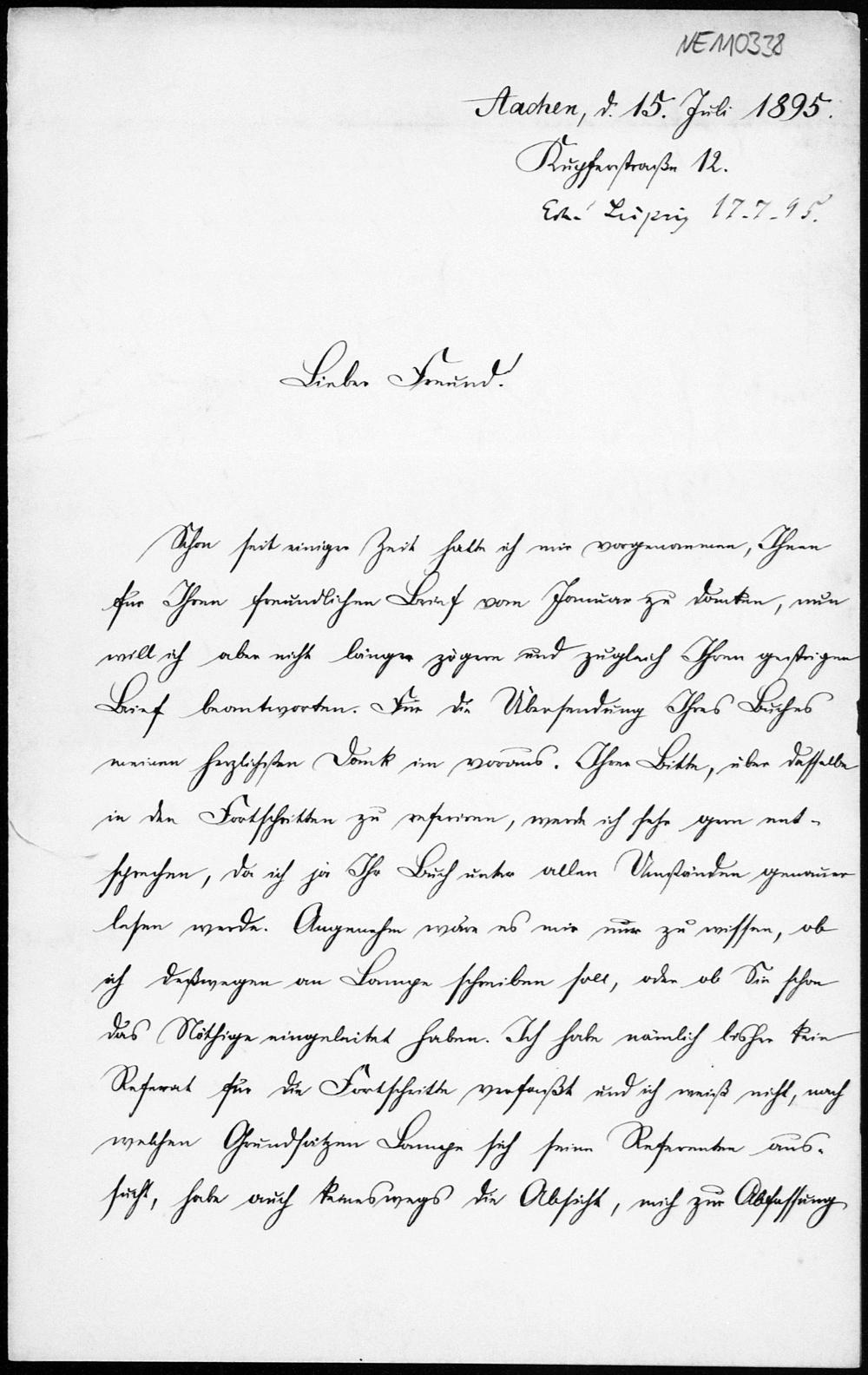 Brief von Friedrich Schur an Friedrich Engel vom 15.7.1895