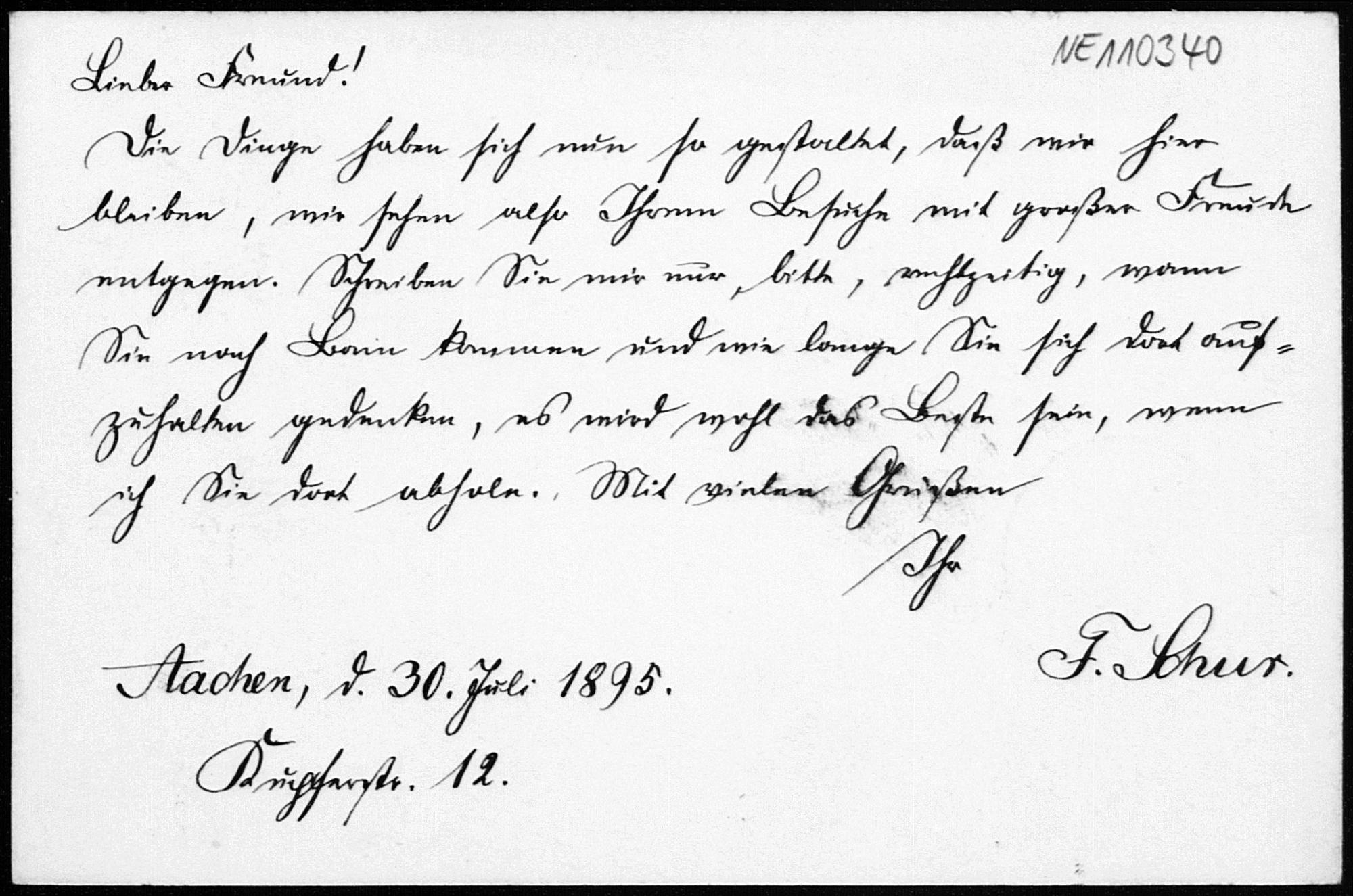 Postkarte von Friedrich Schur an Friedrich Engel vom 30.7.1895