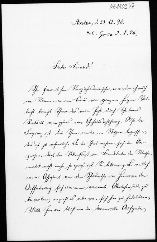 Brief von Friedrich Schur an Friedrich Engel vom 31.12.1895