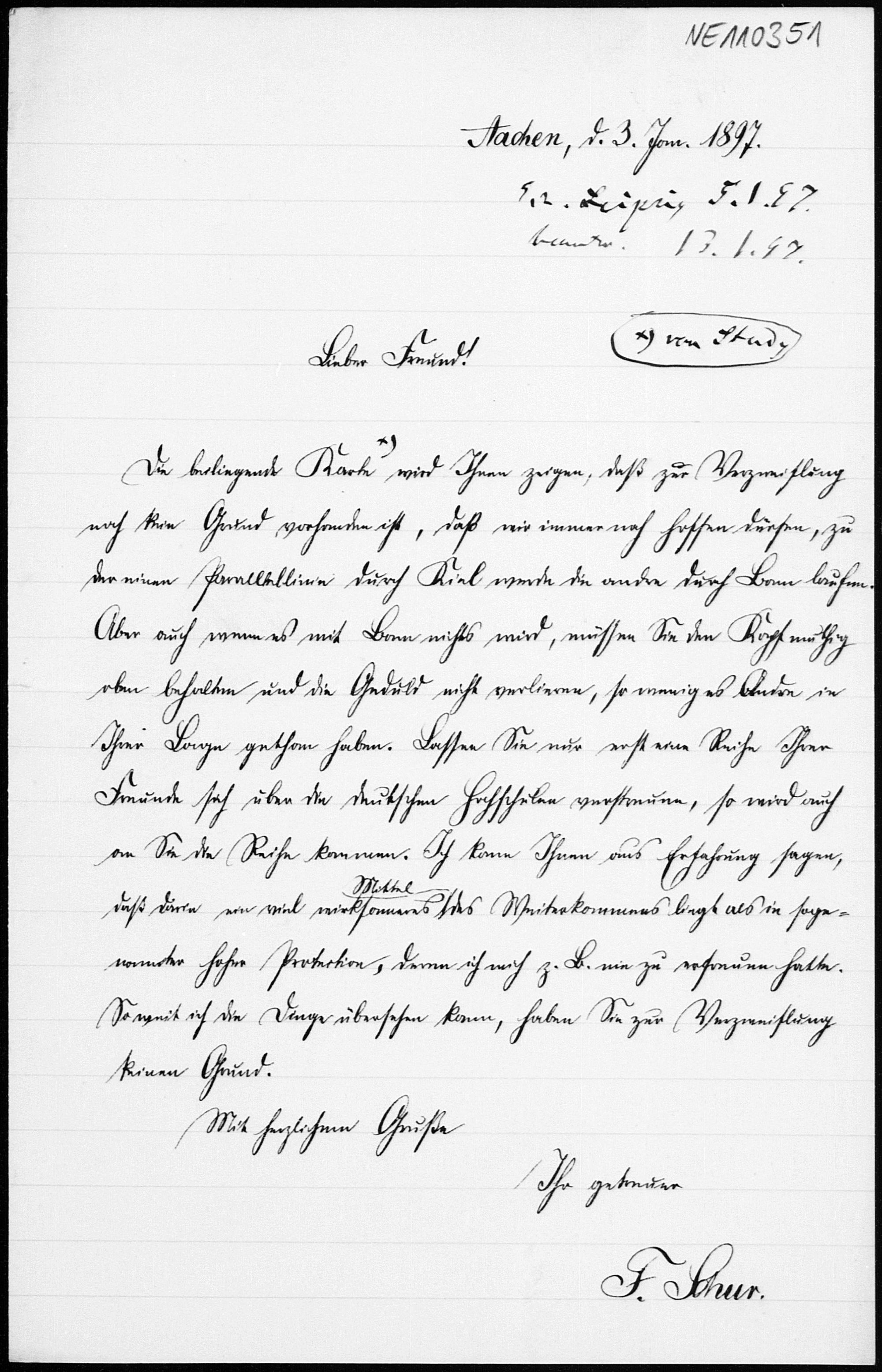 Brief von Friedrich Schur an Friedrich Engel vom 3.1.1897