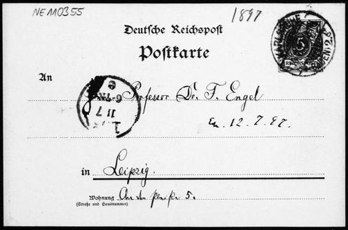 Postkarte von Friedrich Schur an Friedrich Engel vom 10.7.1897