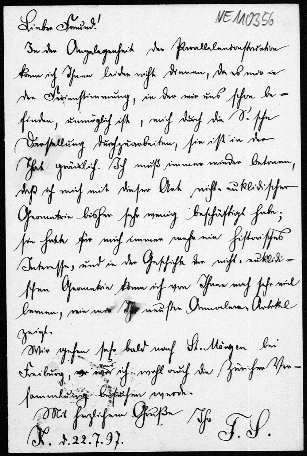 Postkarte von Friedrich Schur an Friedrich Engel vom 22.7.1897