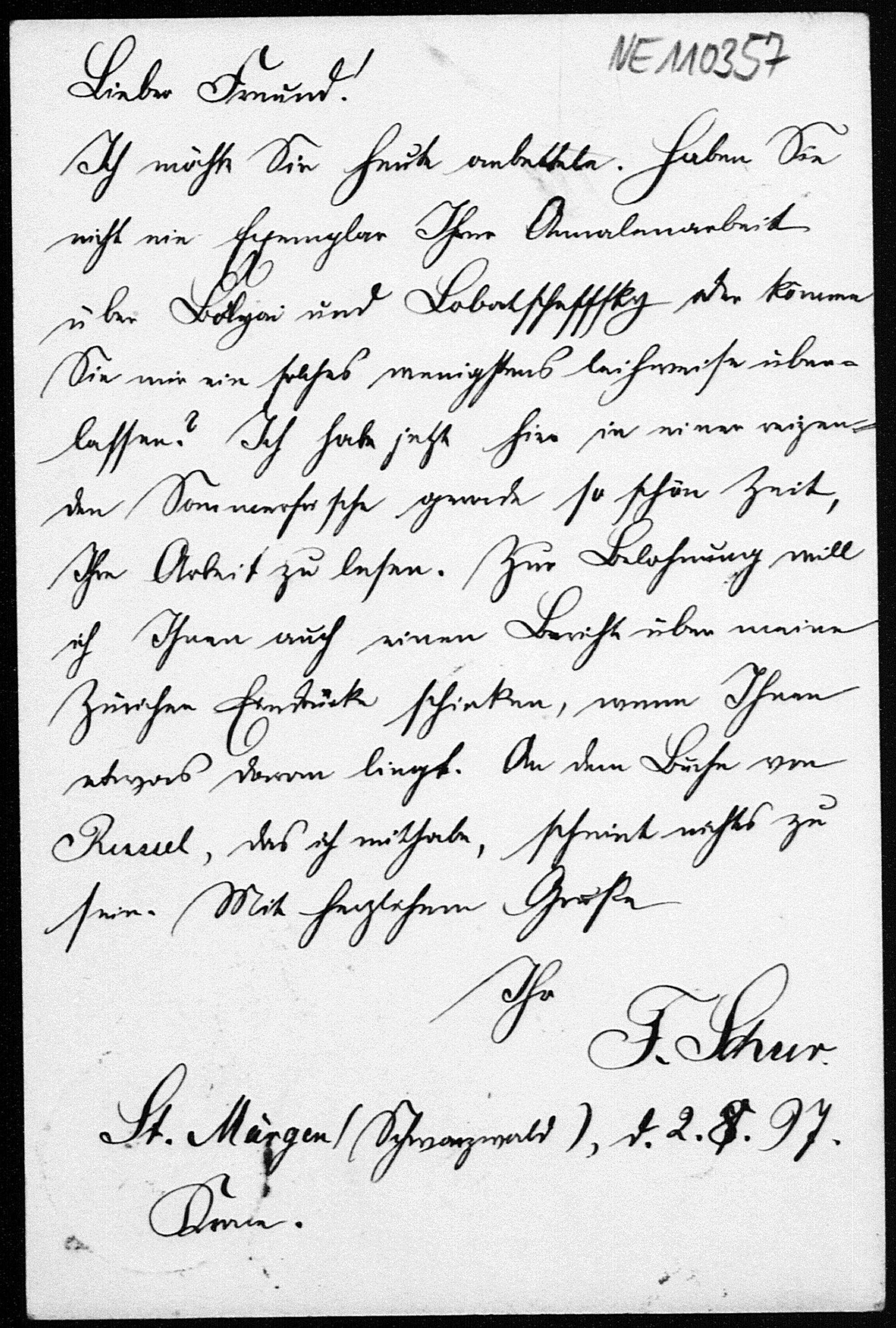 Postkarte von Friedrich Schur an Friedrich Engel vom 2.8.1897
