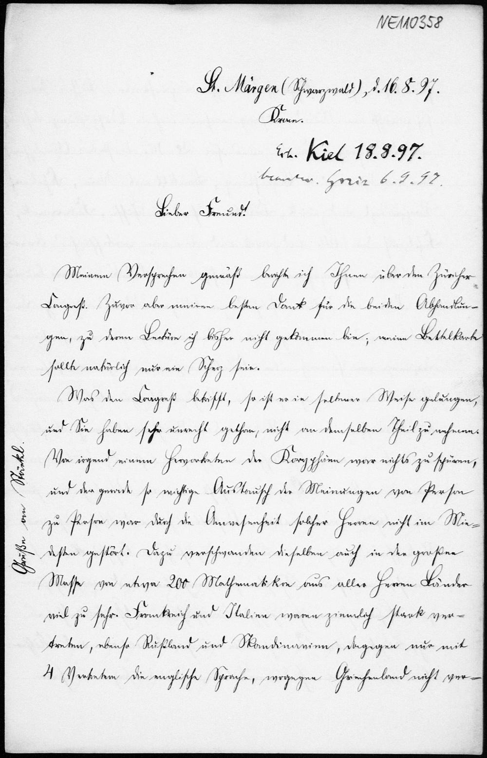 Brief von Friedrich Schur an Friedrich Engel vom 16.8.1897