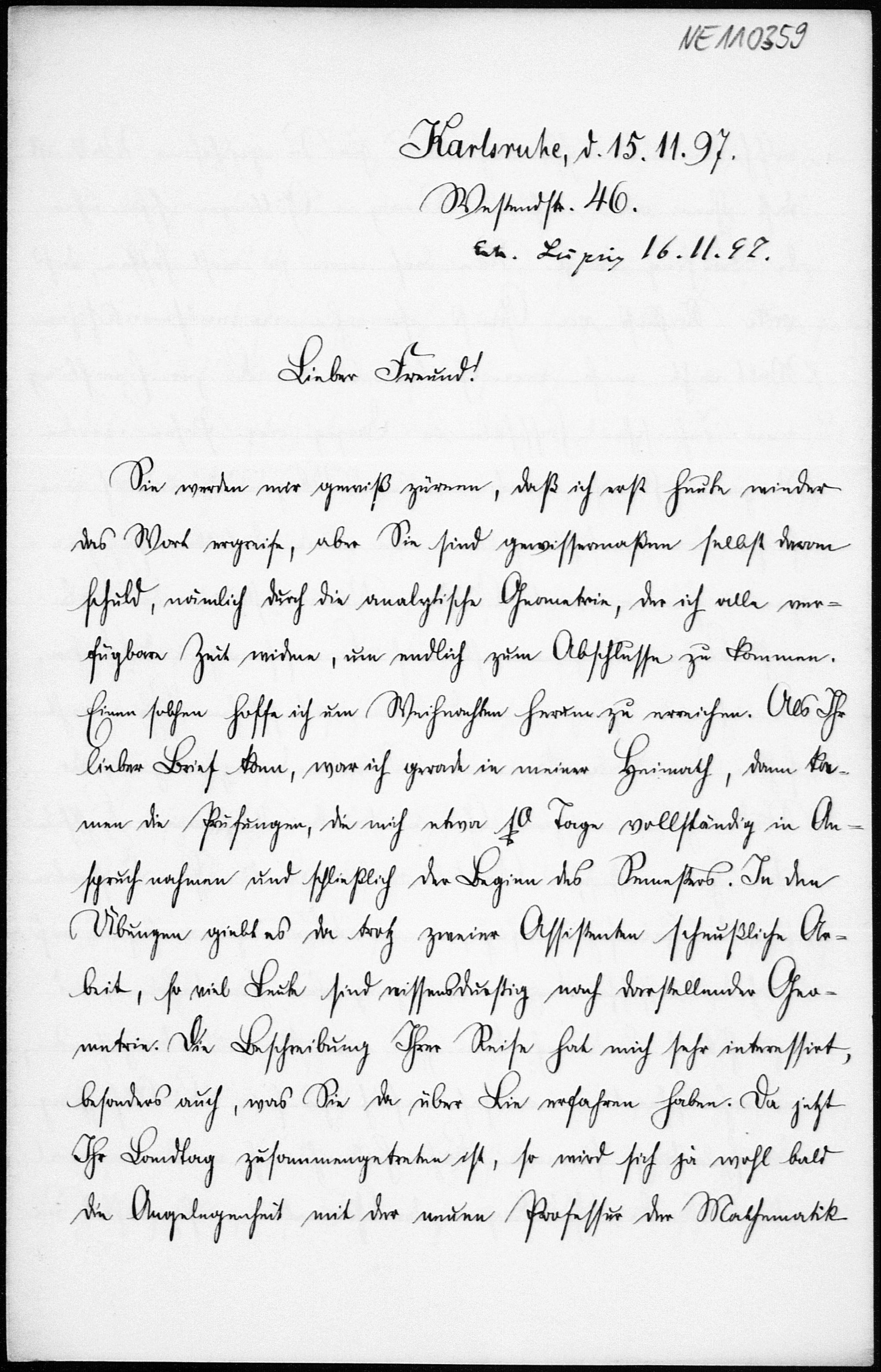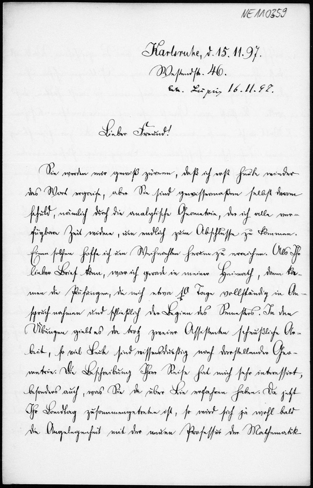 Brief von Friedrich Schur an Friedrich Engel vom 15.11.1897