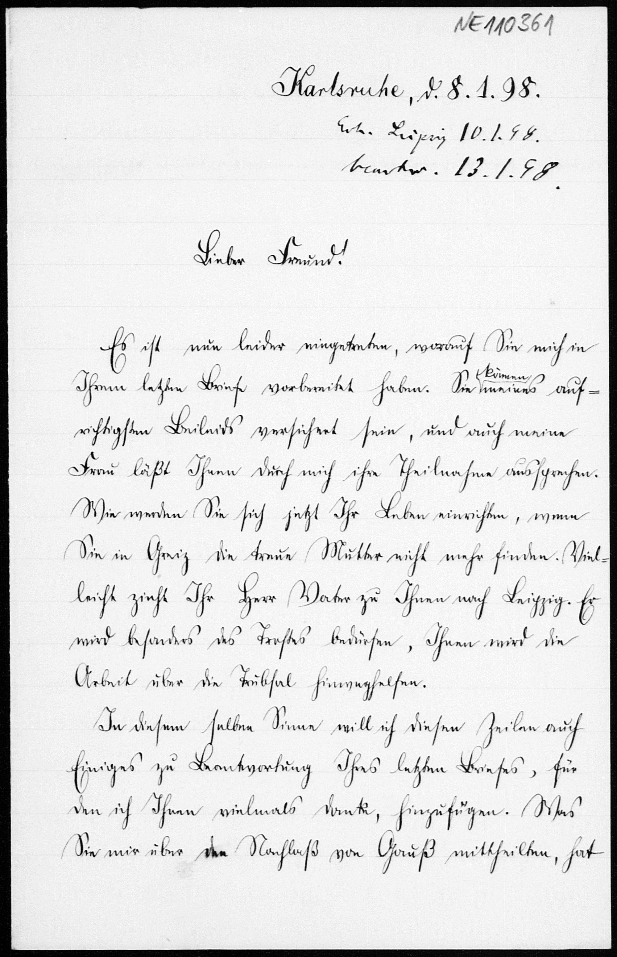 Brief von Friedrich Schur an Friedrich Engel vom 8.1.1898