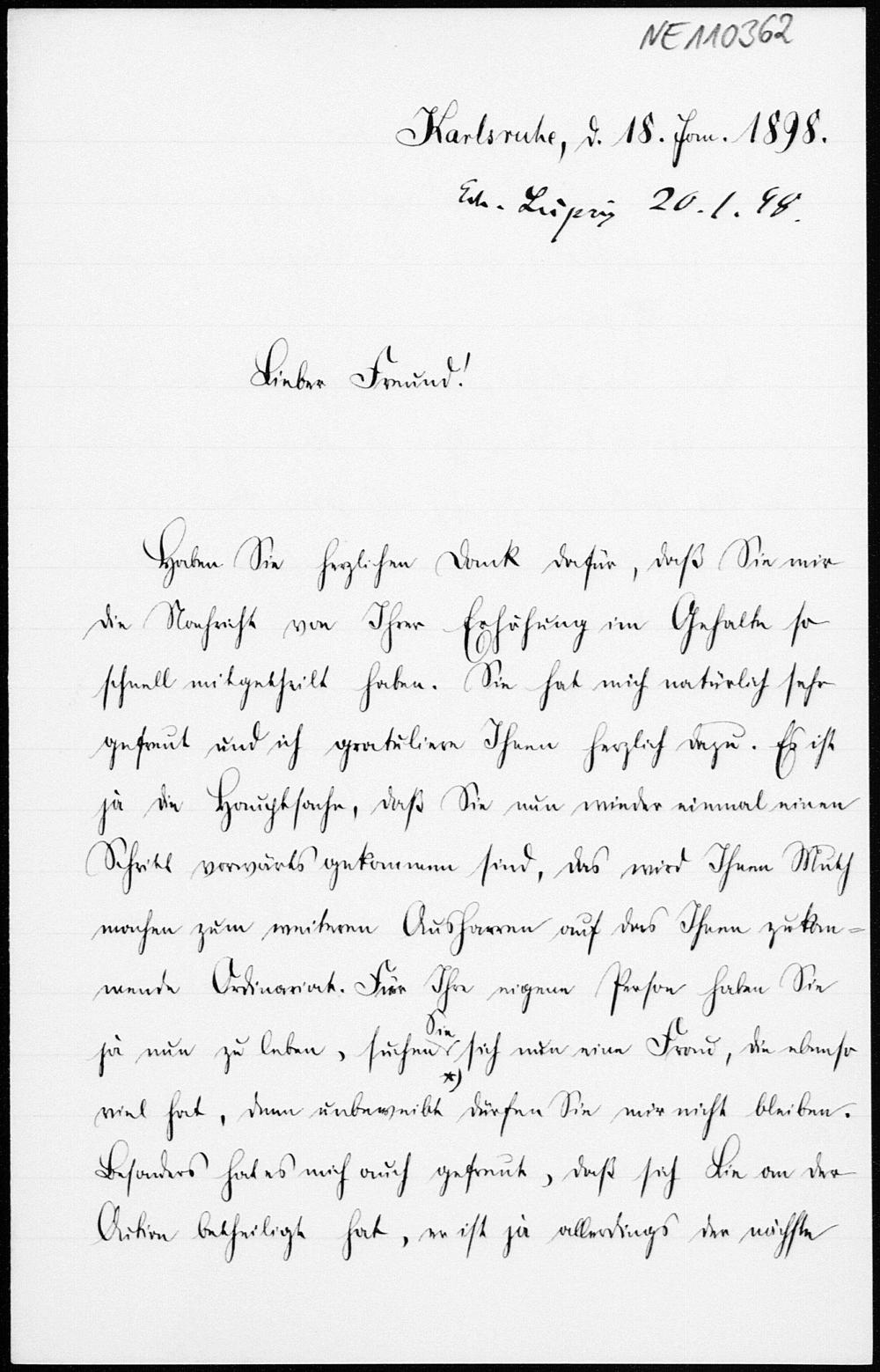 Brief von Friedrich Schur an Friedrich Engel vom 18.1.1898
