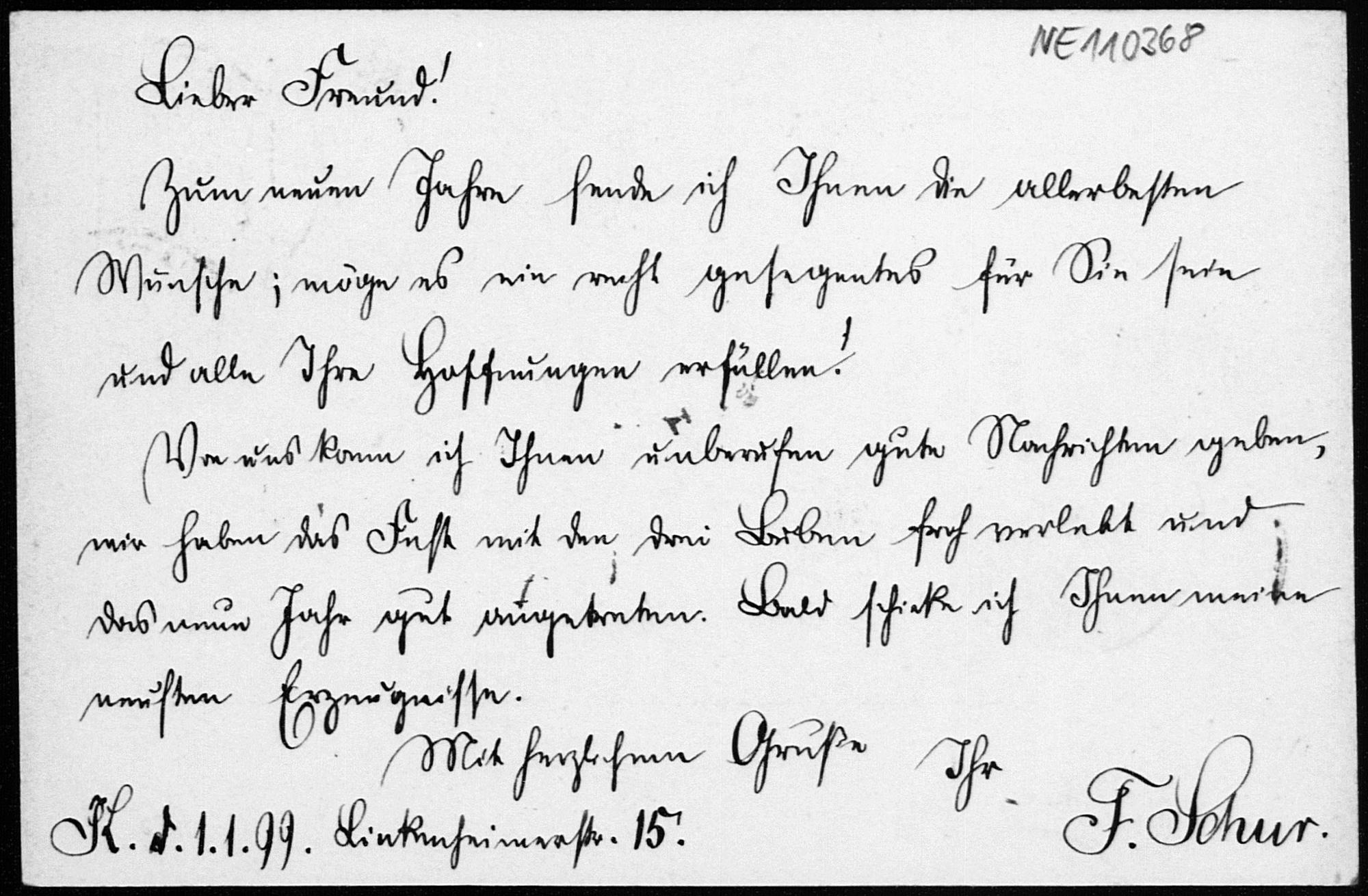 Postkarte von Friedrich Schur an Friedrich Engel vom 1.1.1899