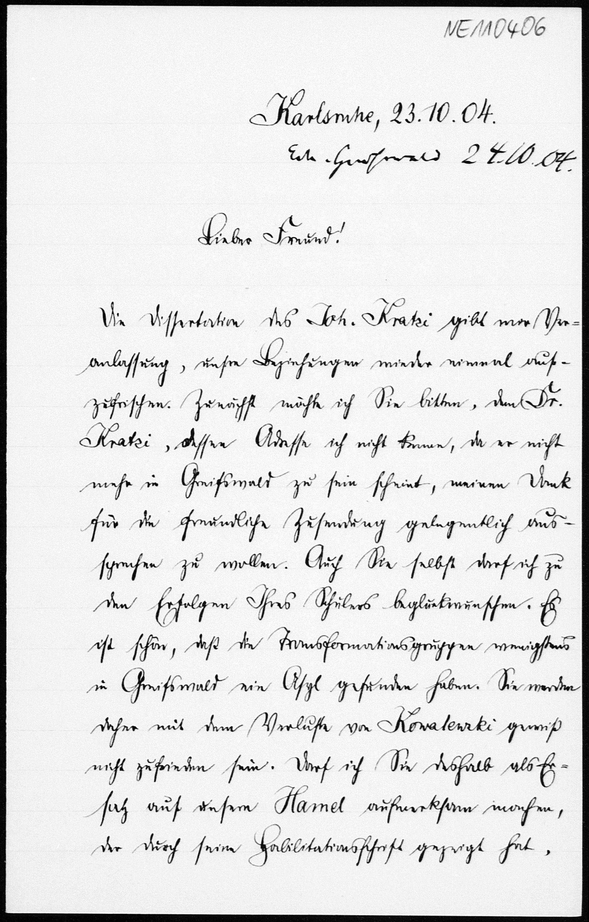 Brief von Friedrich Schur an Friedrich Engel vom 23.10.1904