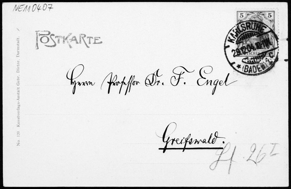 Ansichtskarte von Friedrich Schur an Friedrich Engel vom 29.12.1904