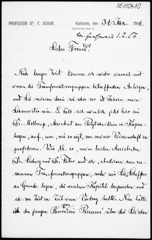 Brief von Friedrich Schur an Friedrich Engel vom 31.1.1906