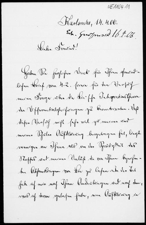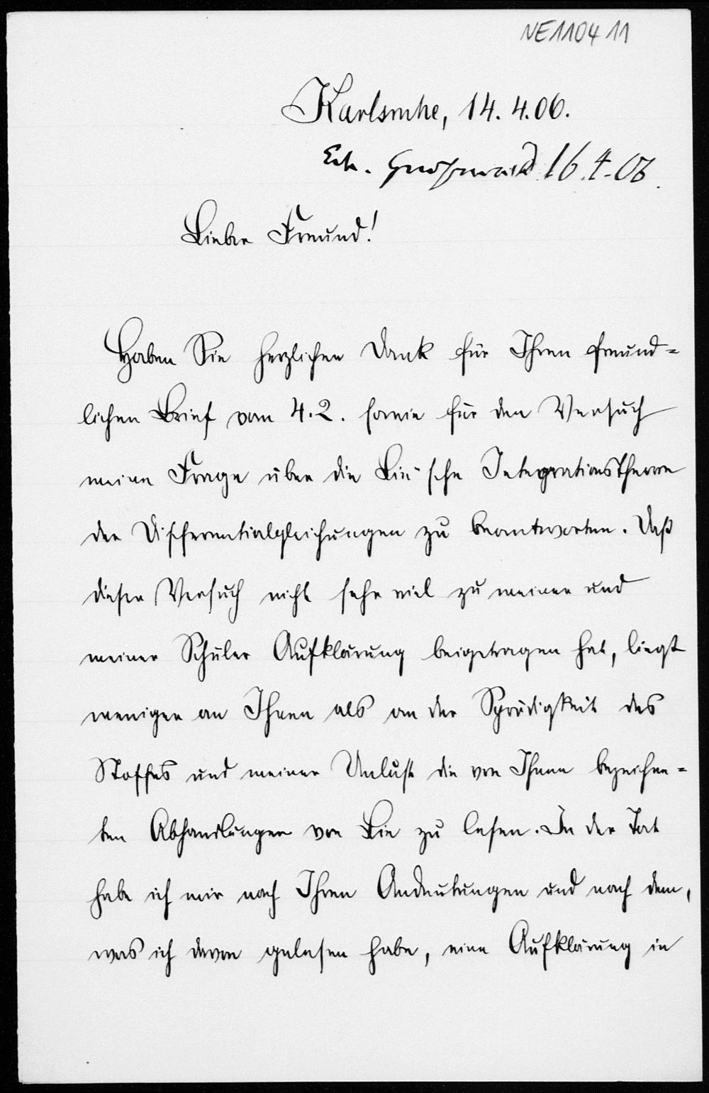 Brief von Friedrich Schur an Friedrich Engel vom 14.4.1906