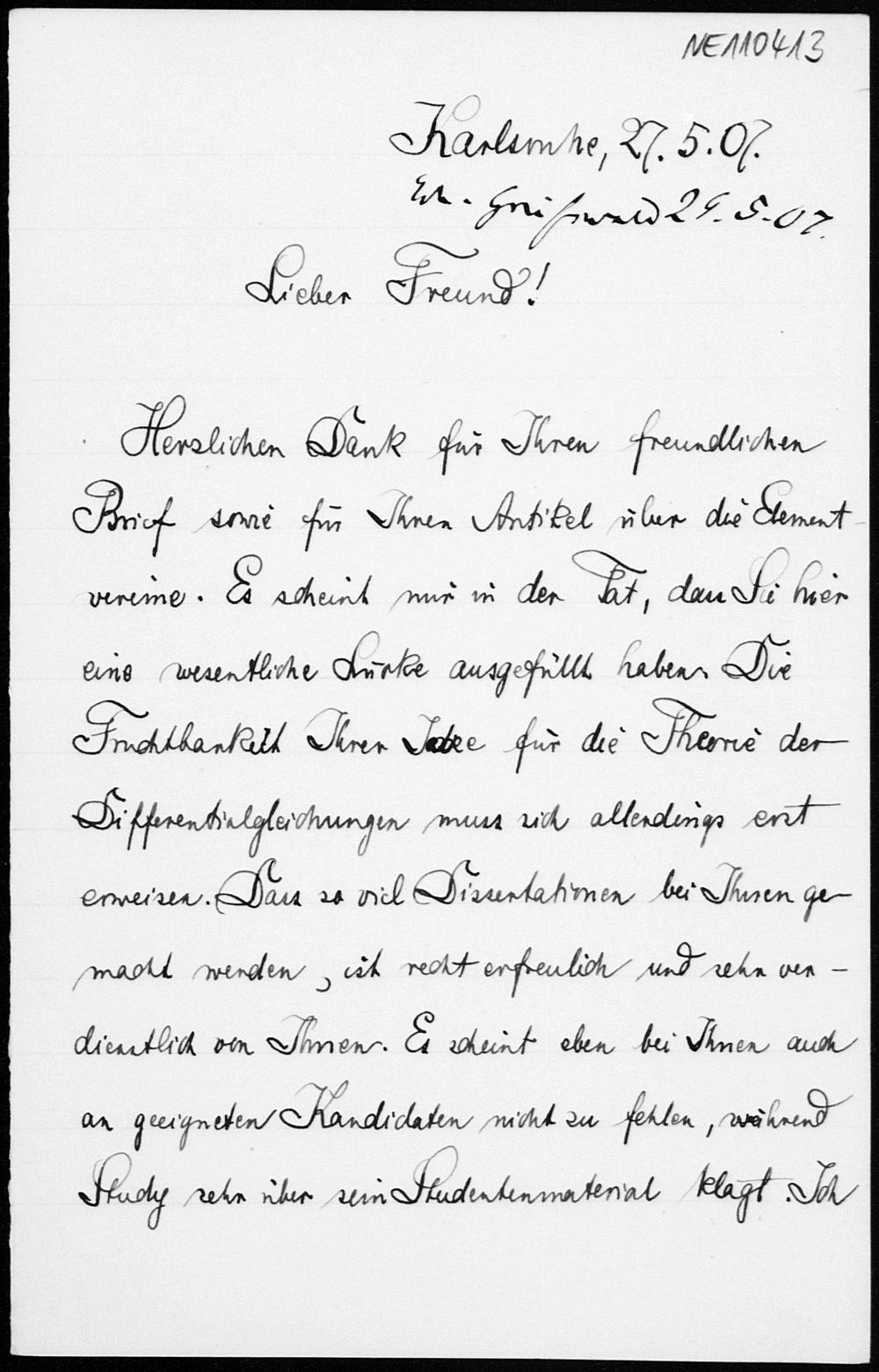 Brief von Friedrich Schur an Friedrich Engel vom 27.5.1907