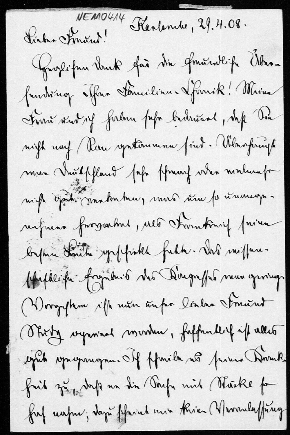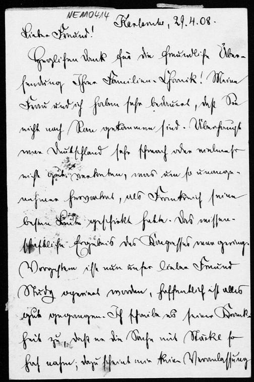 Postkarte von Friedrich Schur an Friedrich Engel vom 29.4.1908