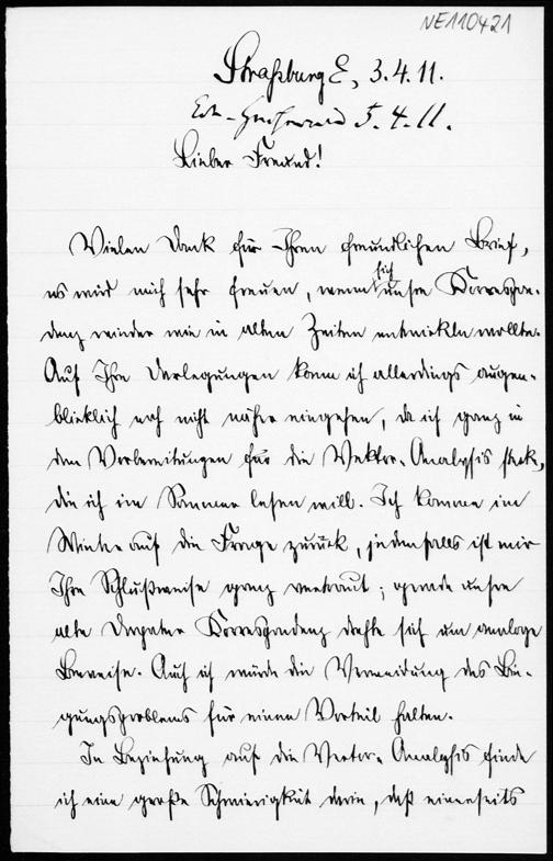 Brief von Friedrich Schur an Friedrich Engel vom 3.4.1911