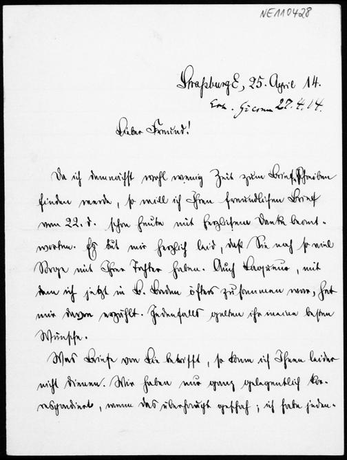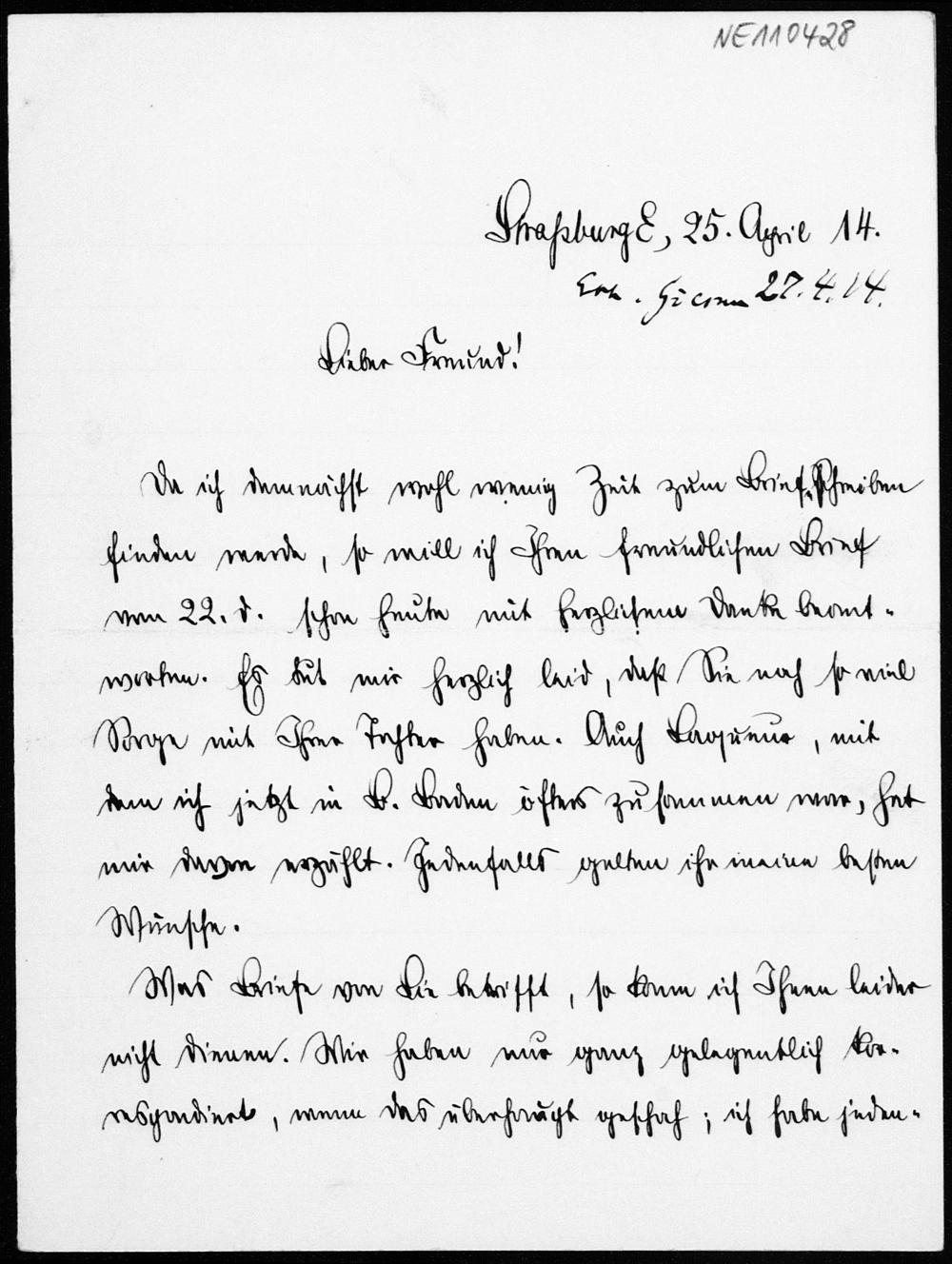 Brief von Friedrich Schur an Friedrich Engel vom 25.4.1914