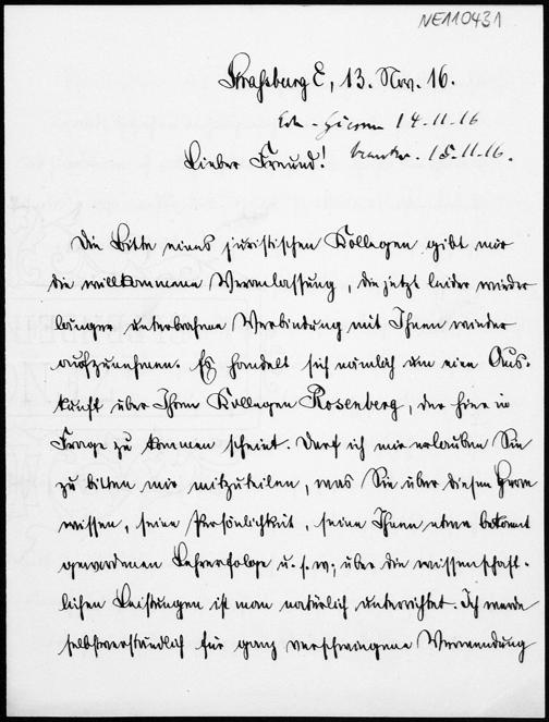 Brief von Friedrich Schur an Friedrich Engel vom 13.11.1916