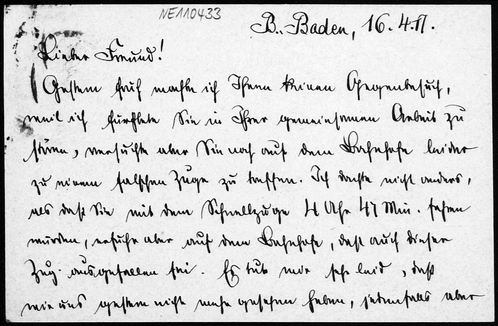 Postkarte von Friedrich Schur an Friedrich Engel vom 16.4.1917
