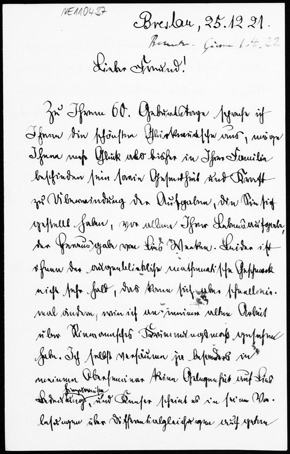 Brief von Friedrich Schur an Friedrich Engel vom 25.12.1921