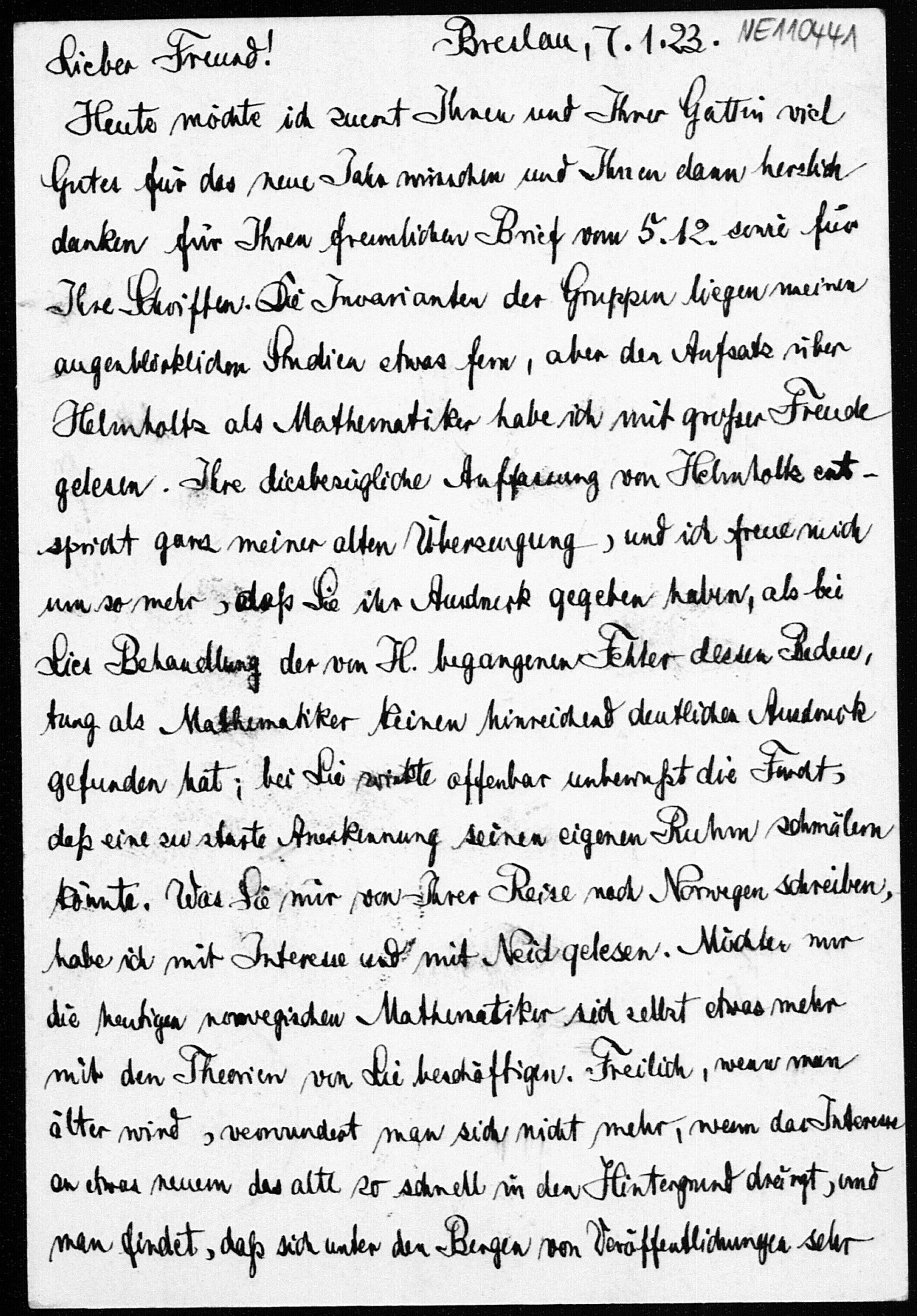 Postkarte von Friedrich Schur an Friedrich Engel vom 7.1.1923