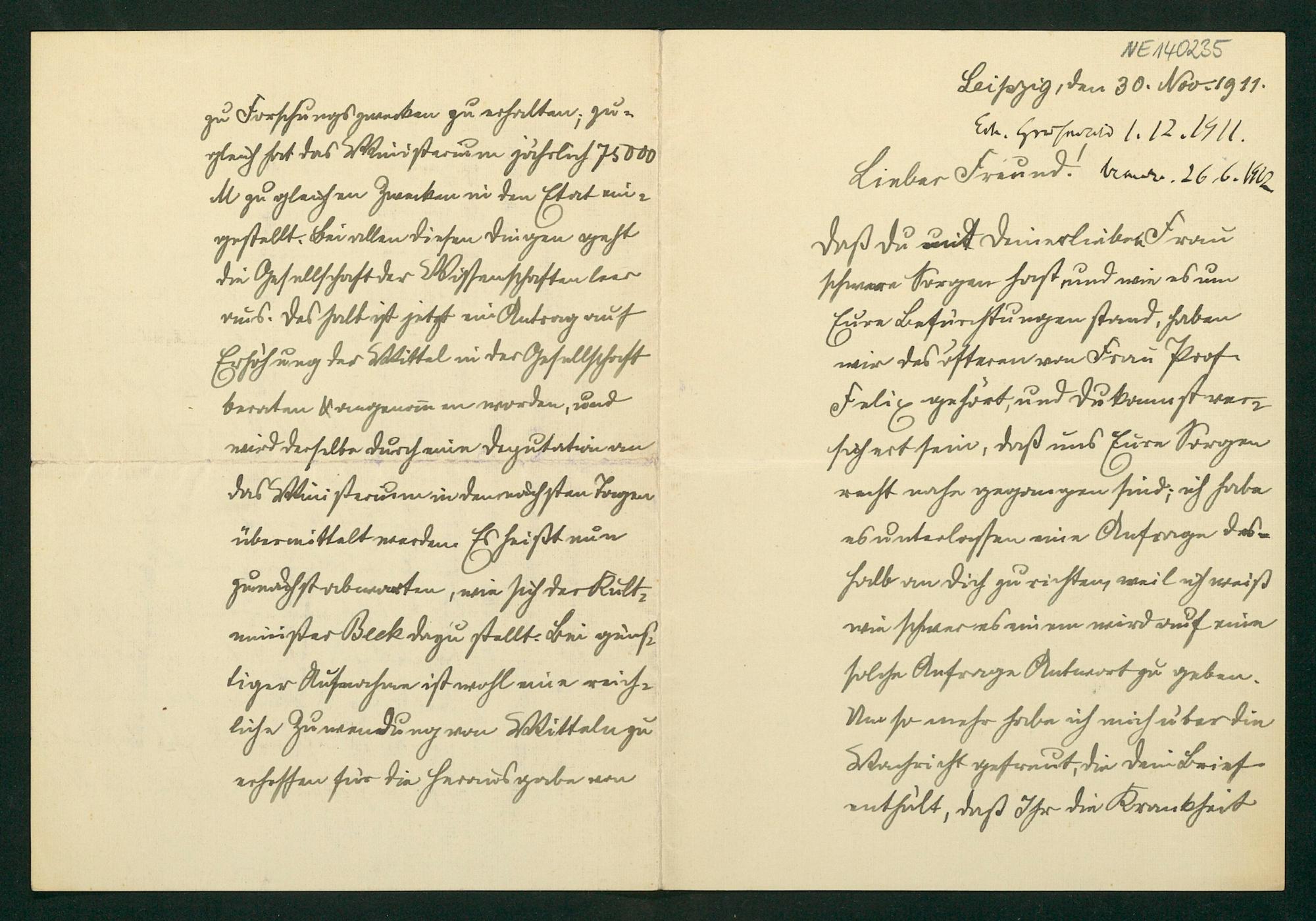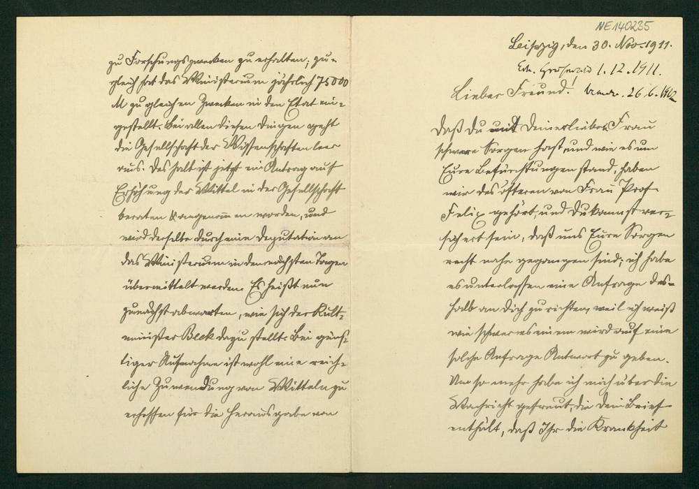 Brief von Karl Rohn an Friedrich Engel vom 30.11.1911